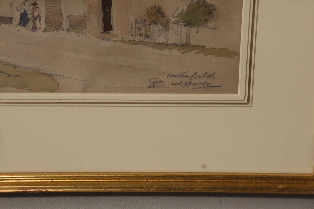 Watercolour, signed lower right, housed within a gilt and glazed frame 56cm by 46cm including the frame.