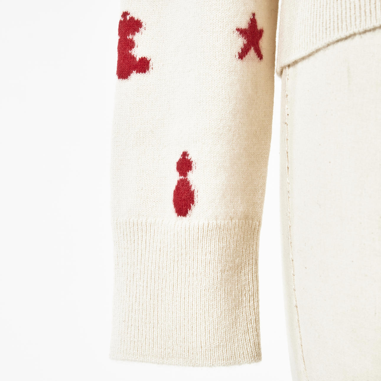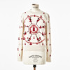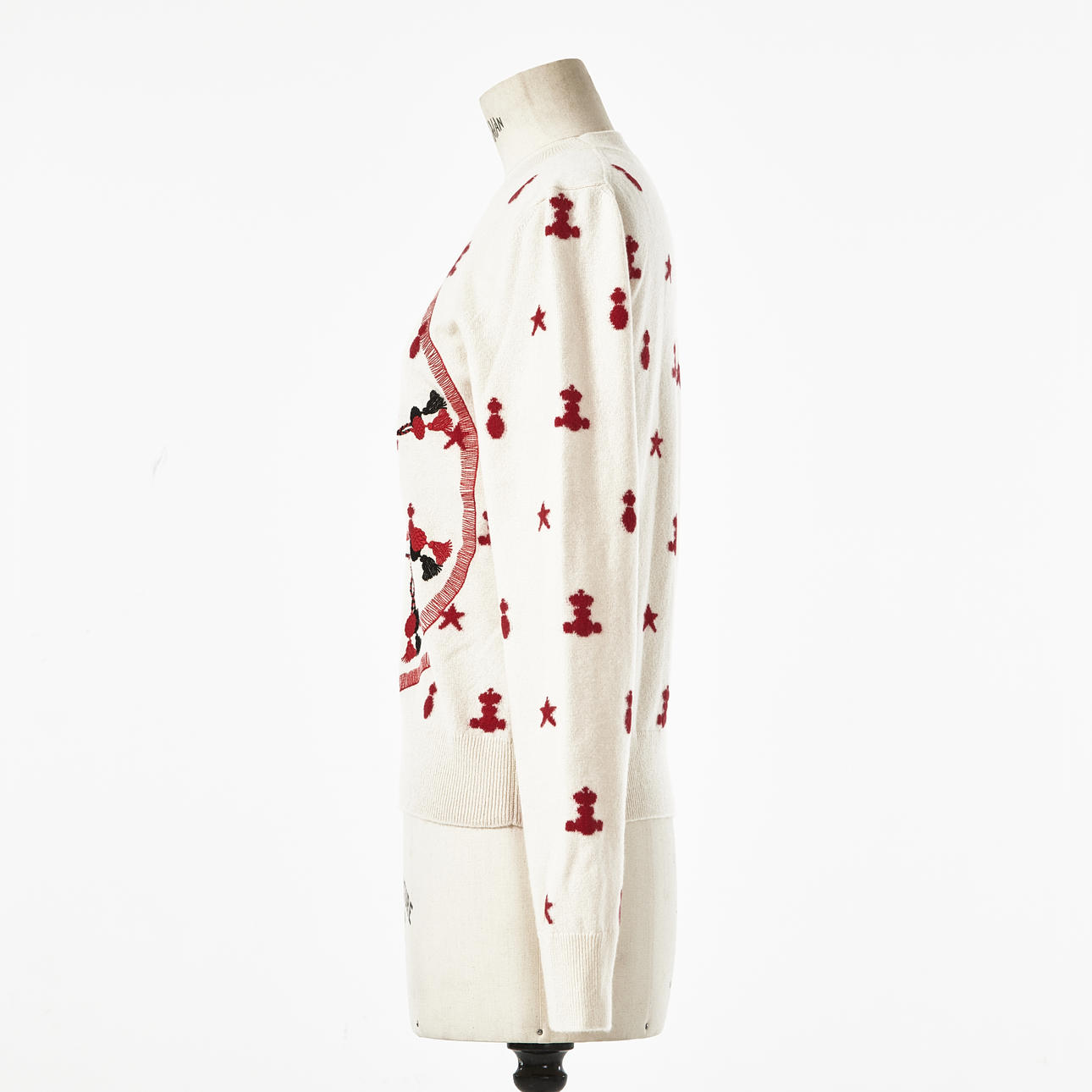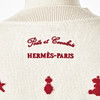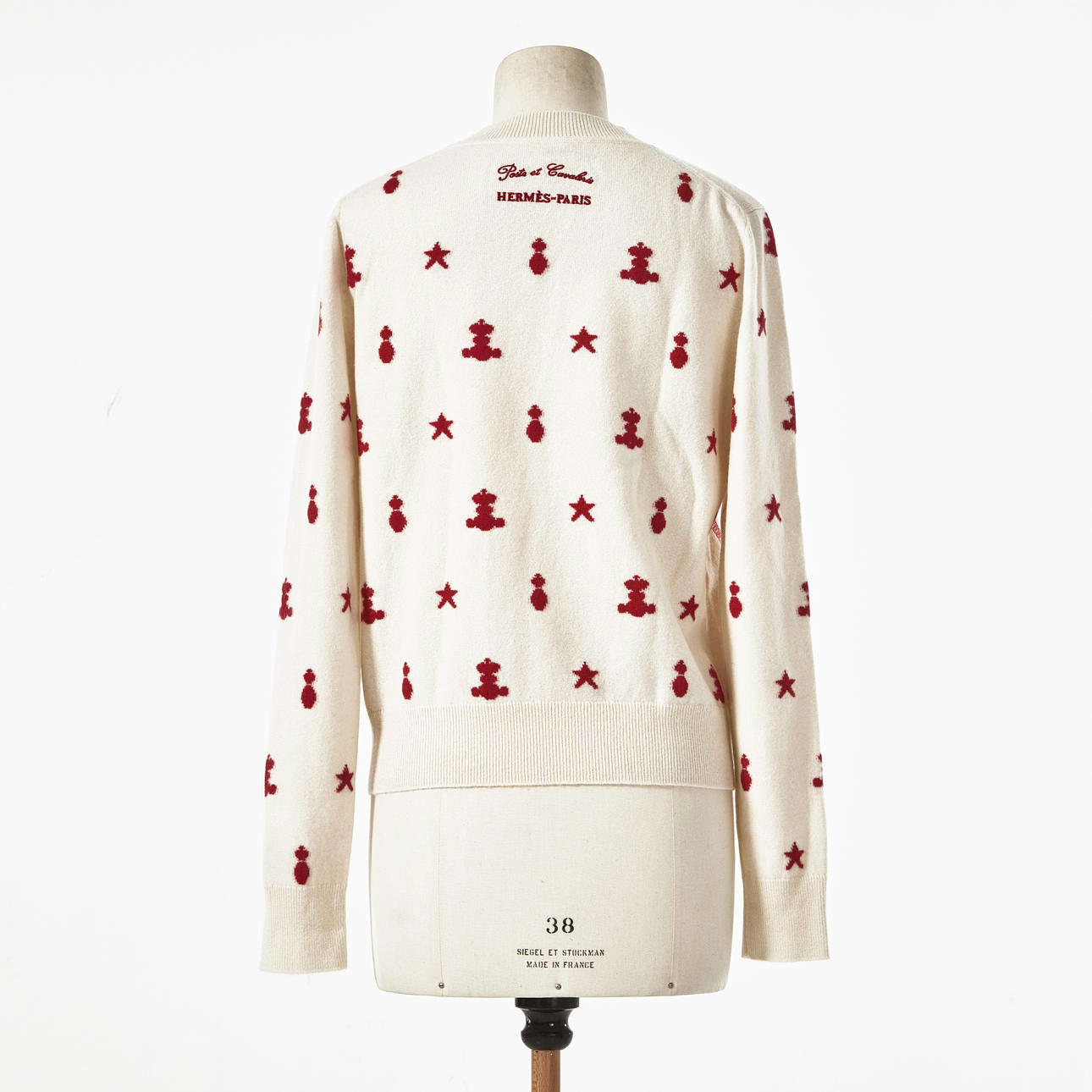 Cashmere, light background with pattern and embroidery in pink and black, label marked "Hermès Paris made in Italy", sleeve length approx. 62, back length 57, bust measurement measured flat approx. 47 cm.