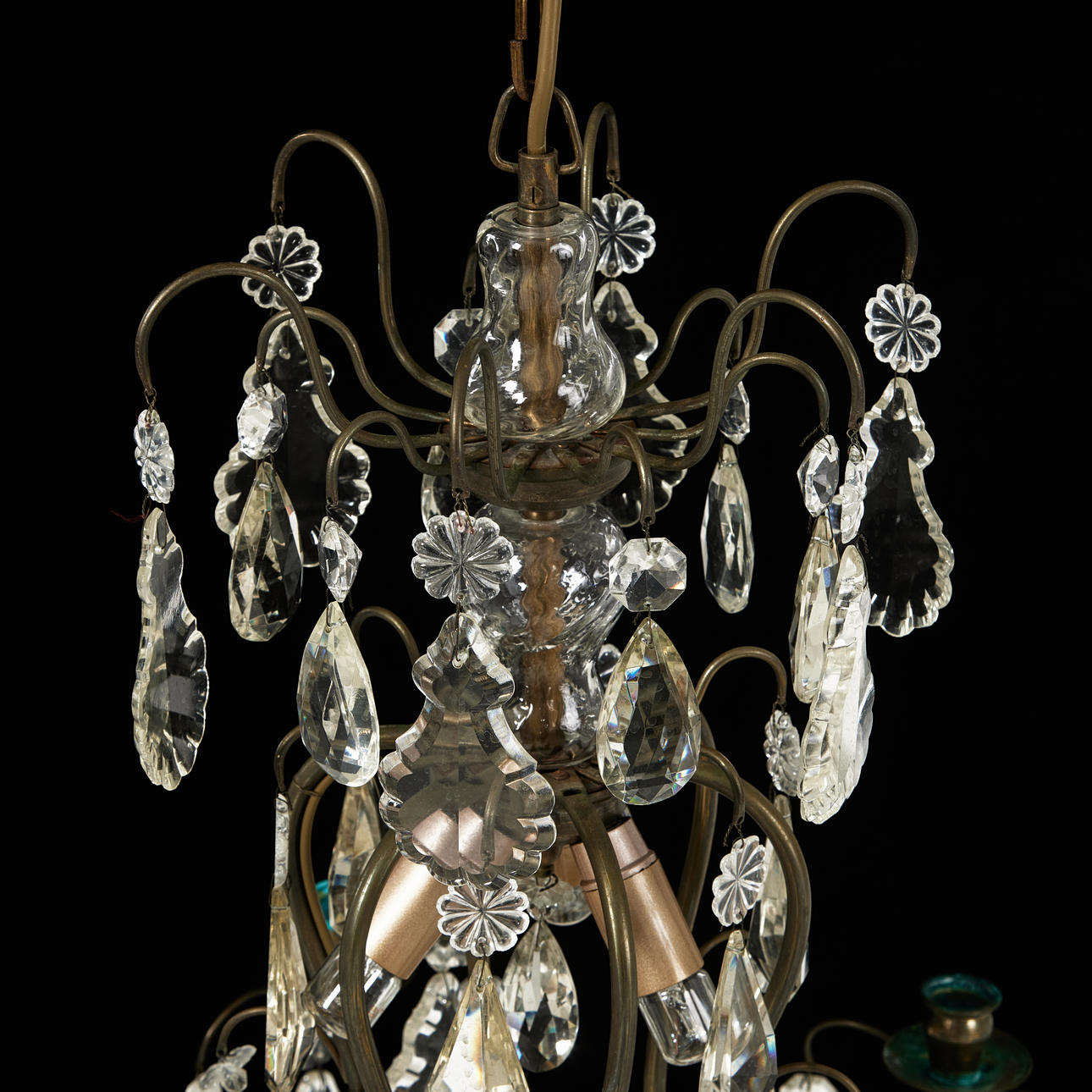 Hung with variously cut prisms, for 6 lights, height 70, diameter 55 cm.