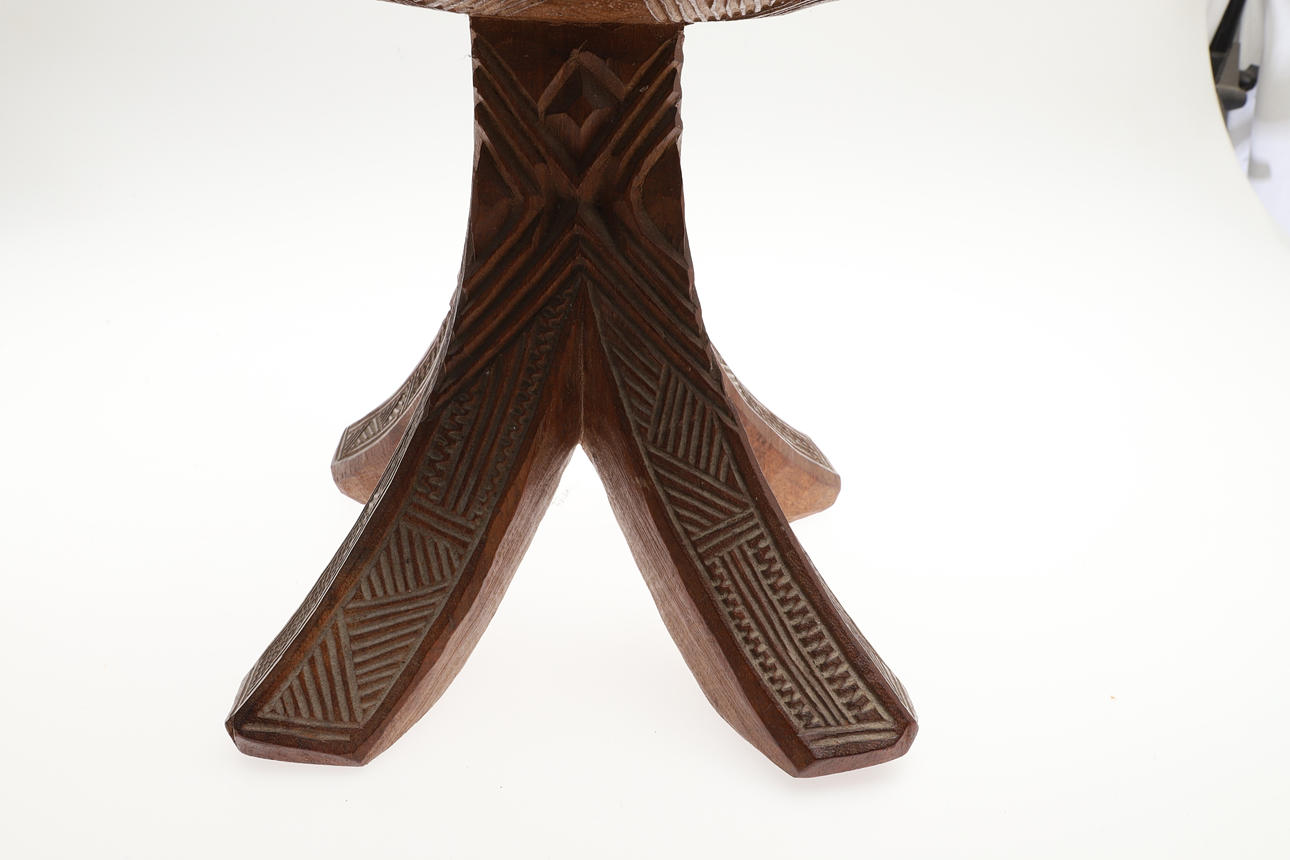 An African tribal stool, with carved decoration to the support, 30cm (h) x 32cm (w).