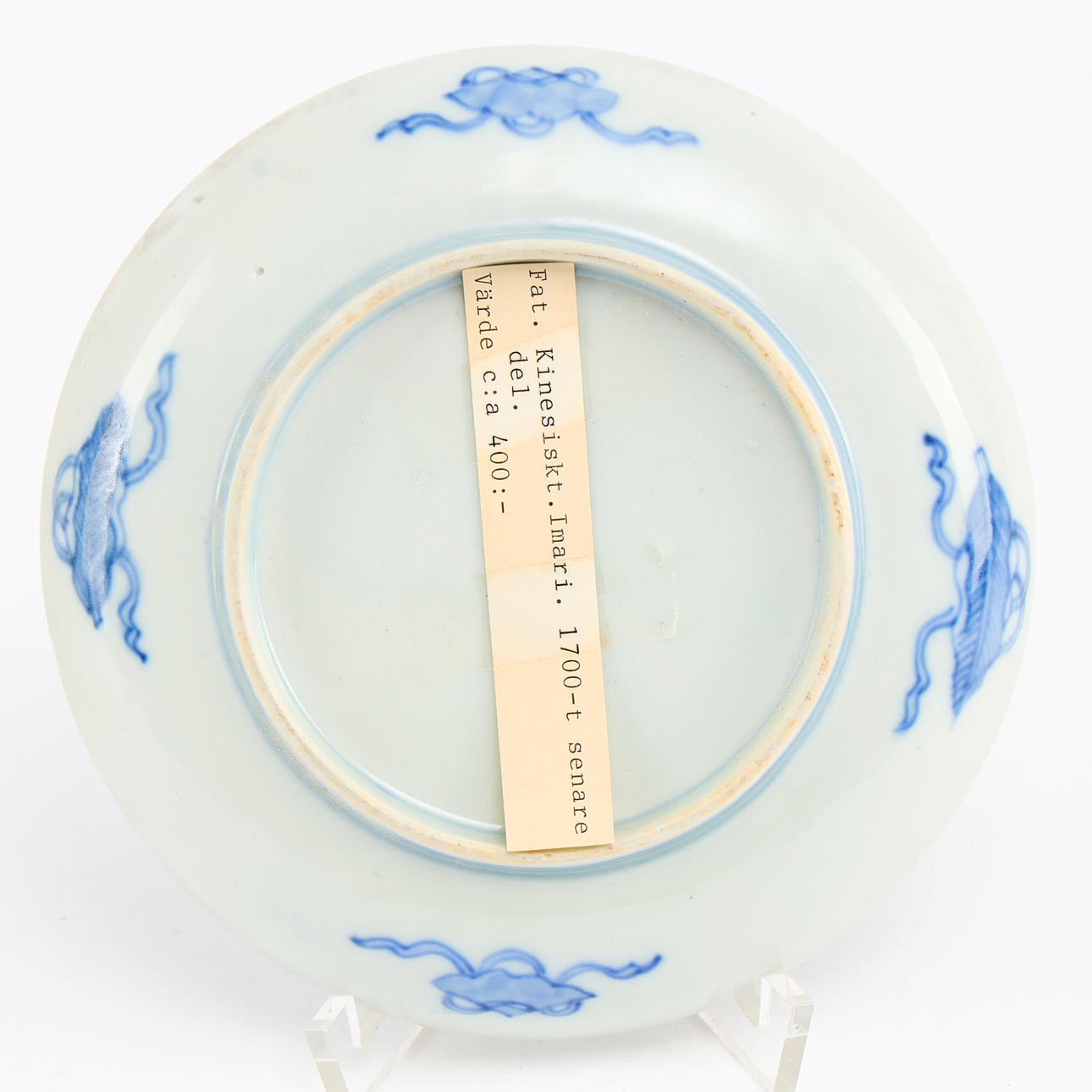 Decorated in underglaze blue, iron red and gold with bird and flowers, Ø 16 cm.