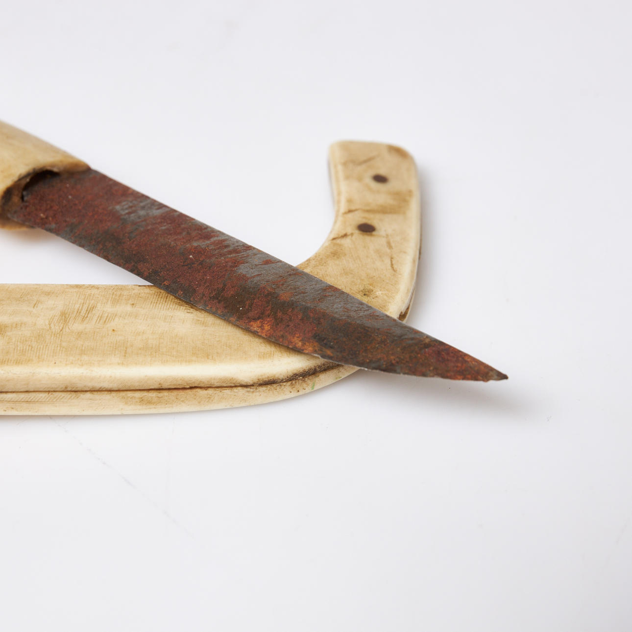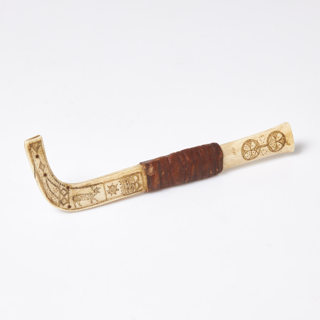 Engraved decoration, monogram signed AB in the leather. Length with sheath 23 cm.