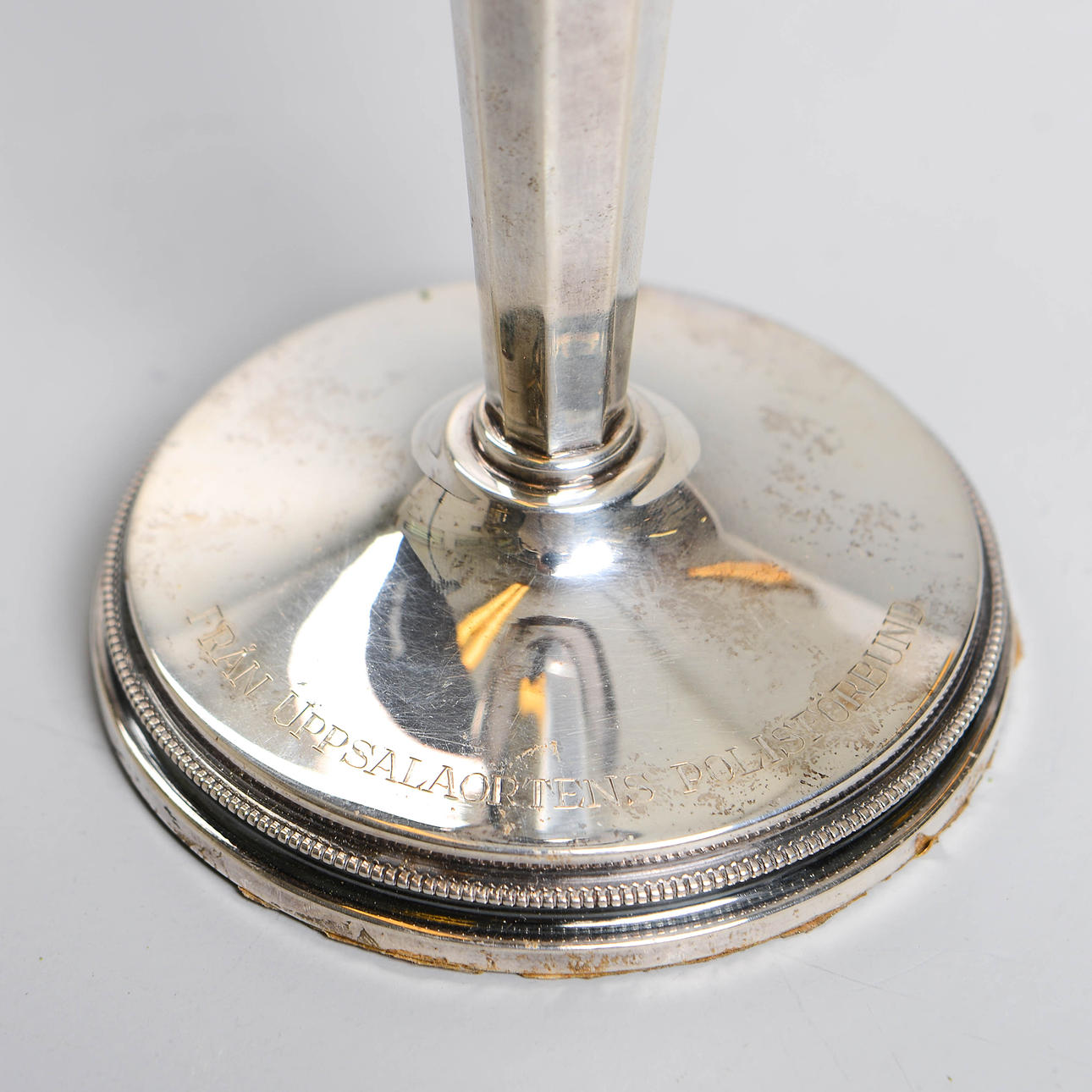 Weighted base, however defective / loose. With inscription.