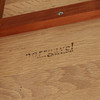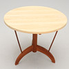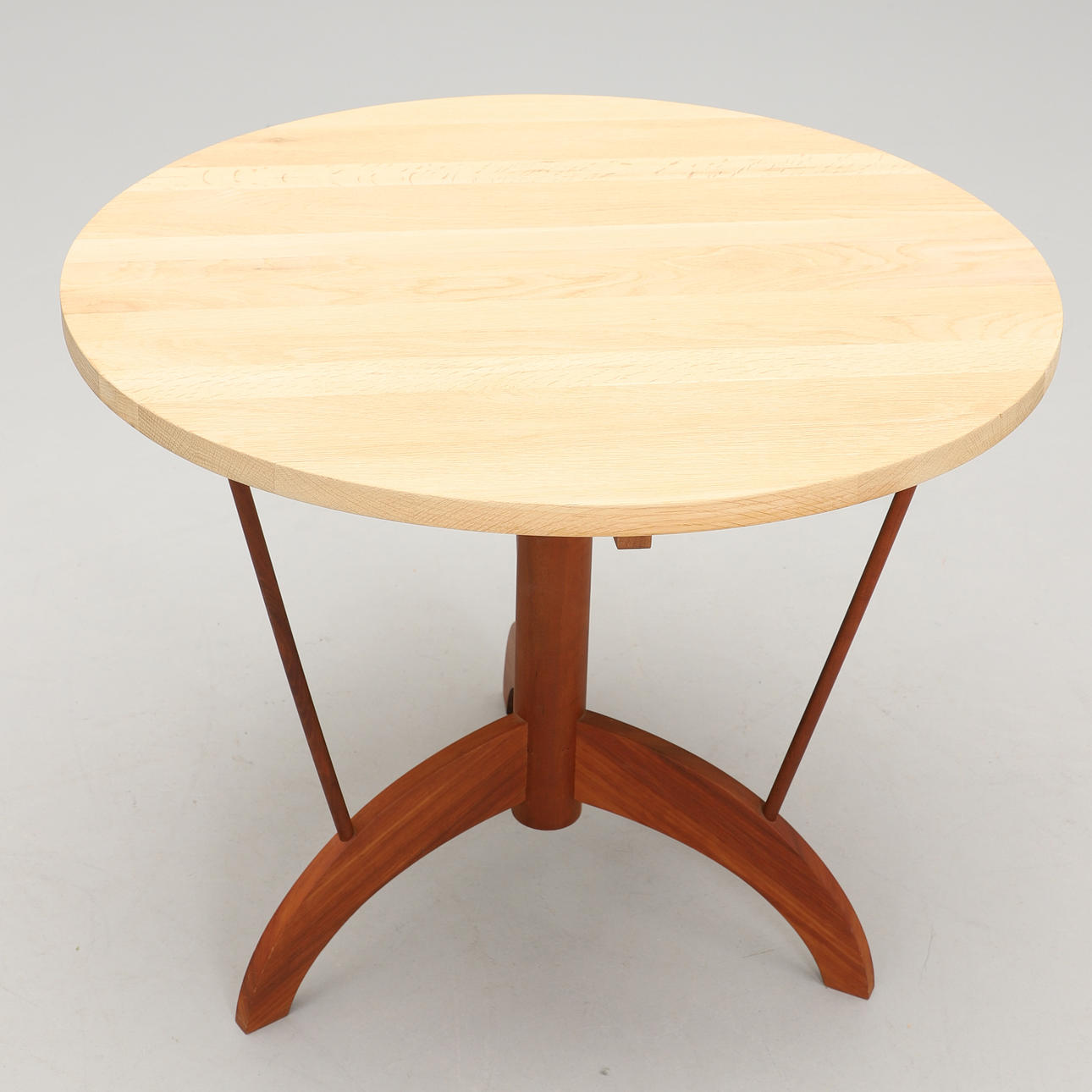 Tabletop in oak, base in cherry. Branded "Norrgavel, design Erik Richter", who now goes by the name Nirvan.
