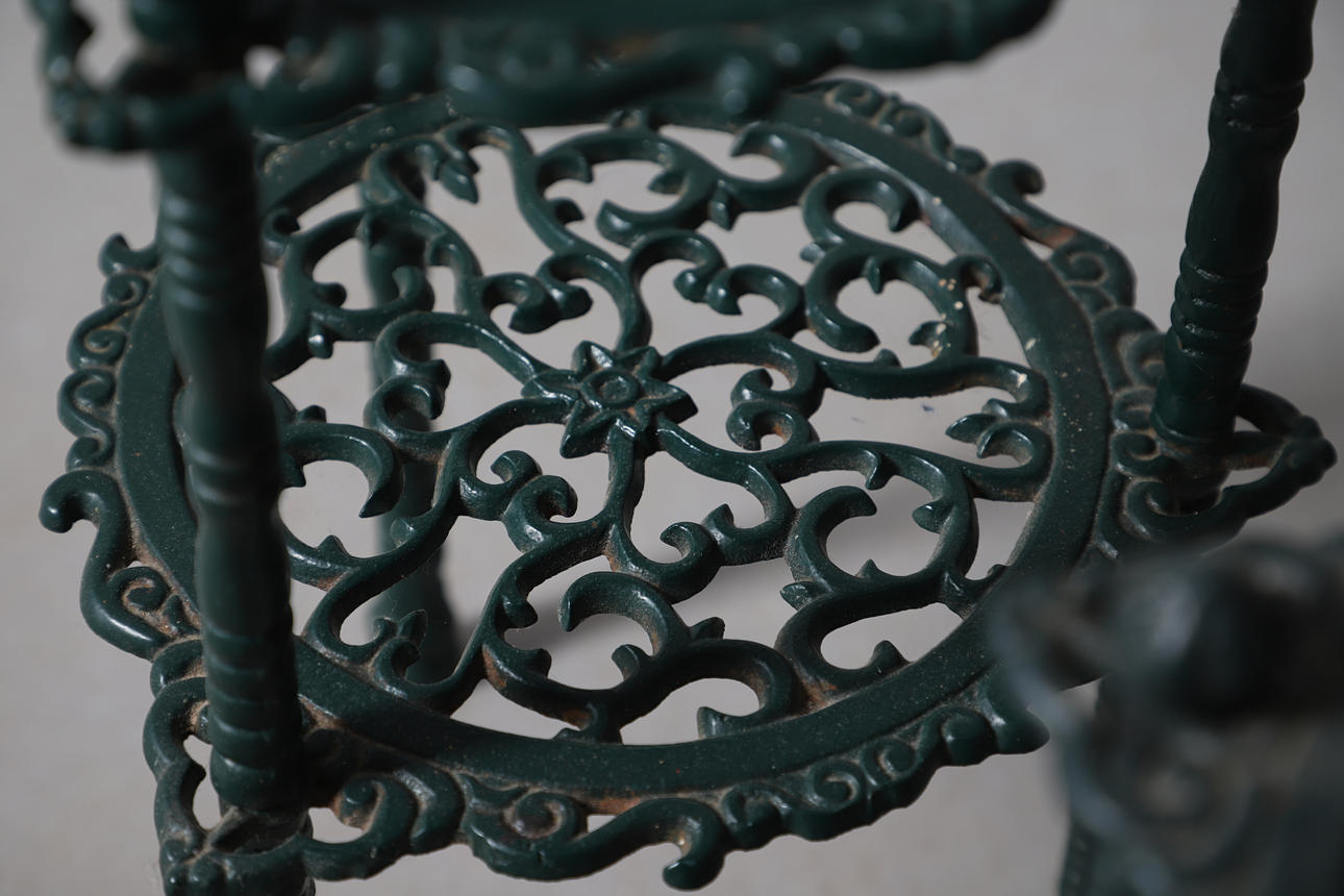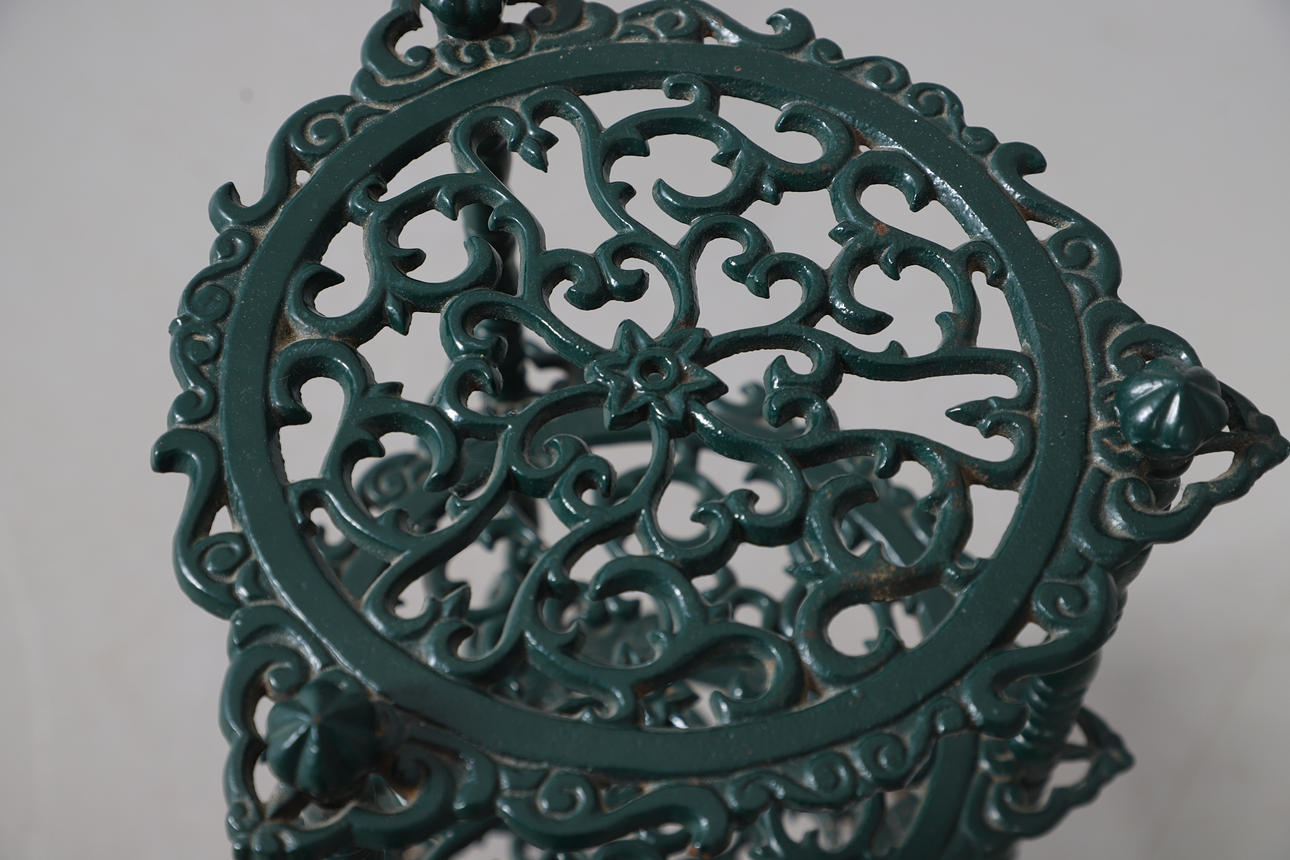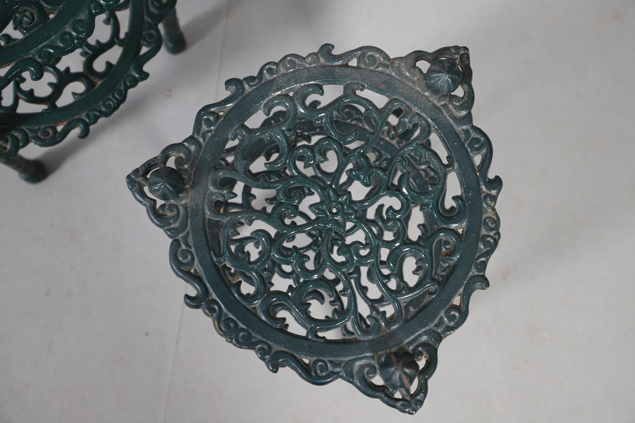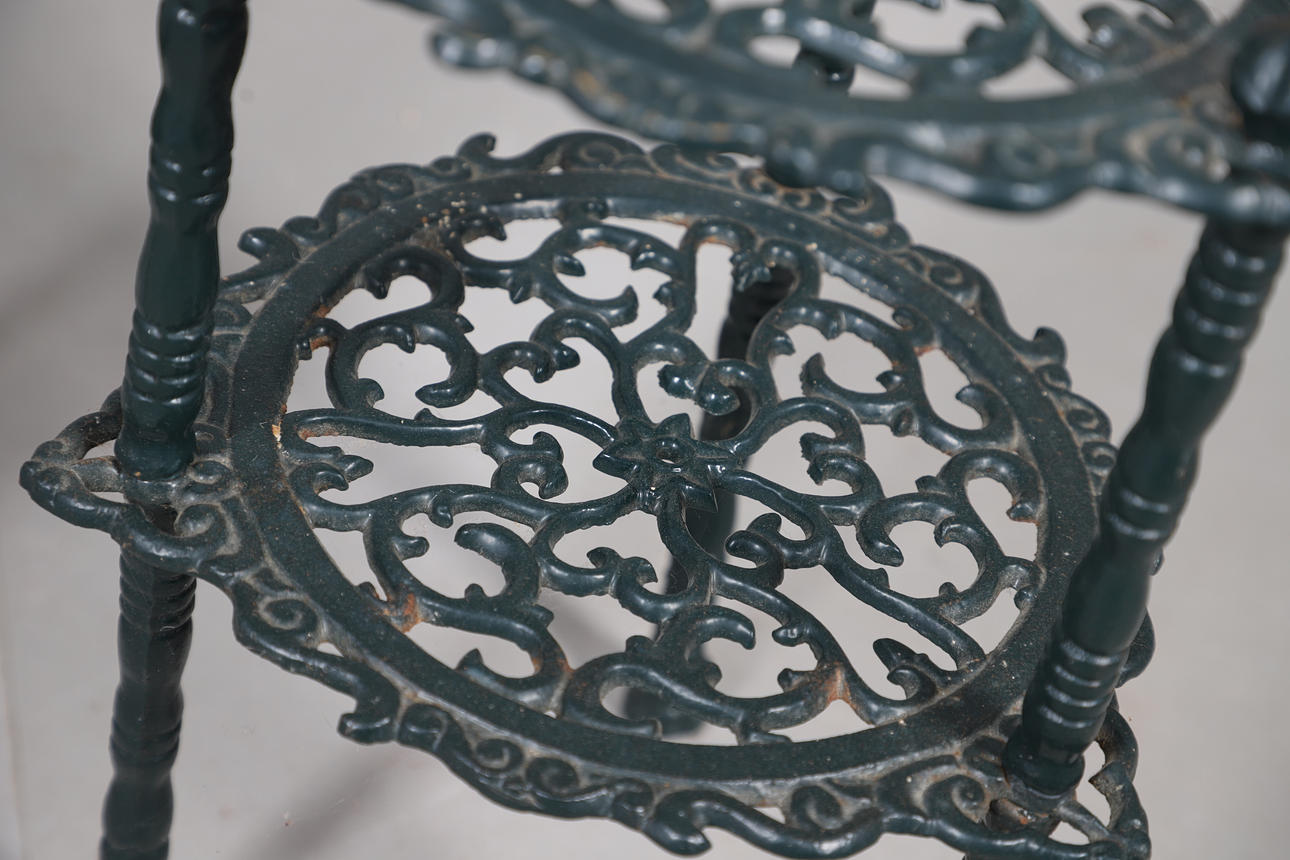 To include a pierced three tiered pan stand, together with a pierced two tiered pan stand. Size of larger, 63cm (h) x 27cm x 26cm. (2).