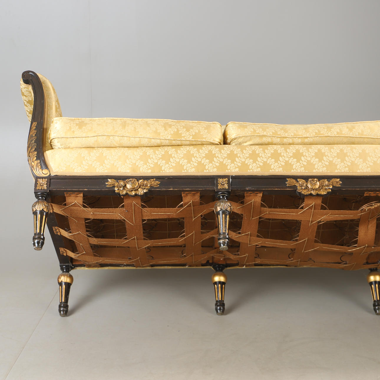 Use- and age-related wear. One webbing strap loose.