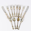 Similar, different manufacturers. 6 forks approx. 14.5 cm. 4 coffee spoons. 2 butter knives.