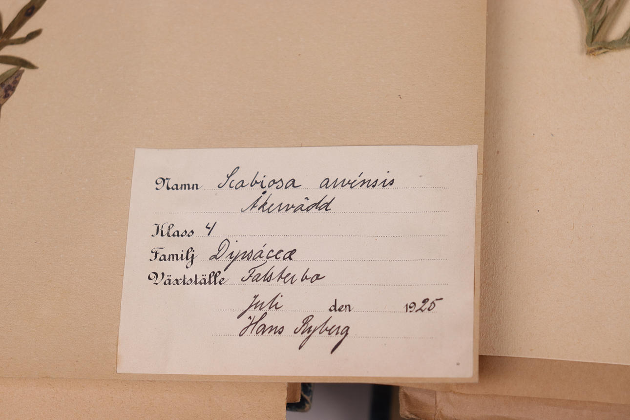 In a folder with a plant list including location, date, and time for the collection of the plants.