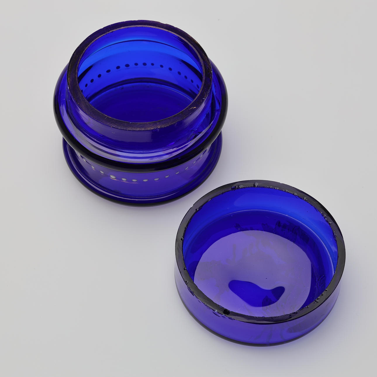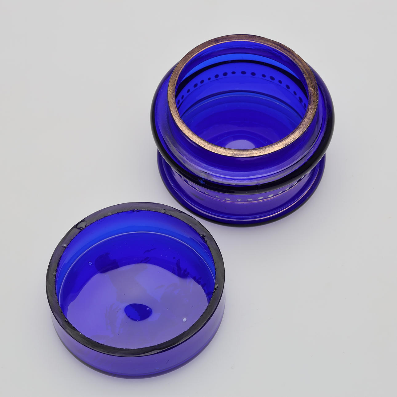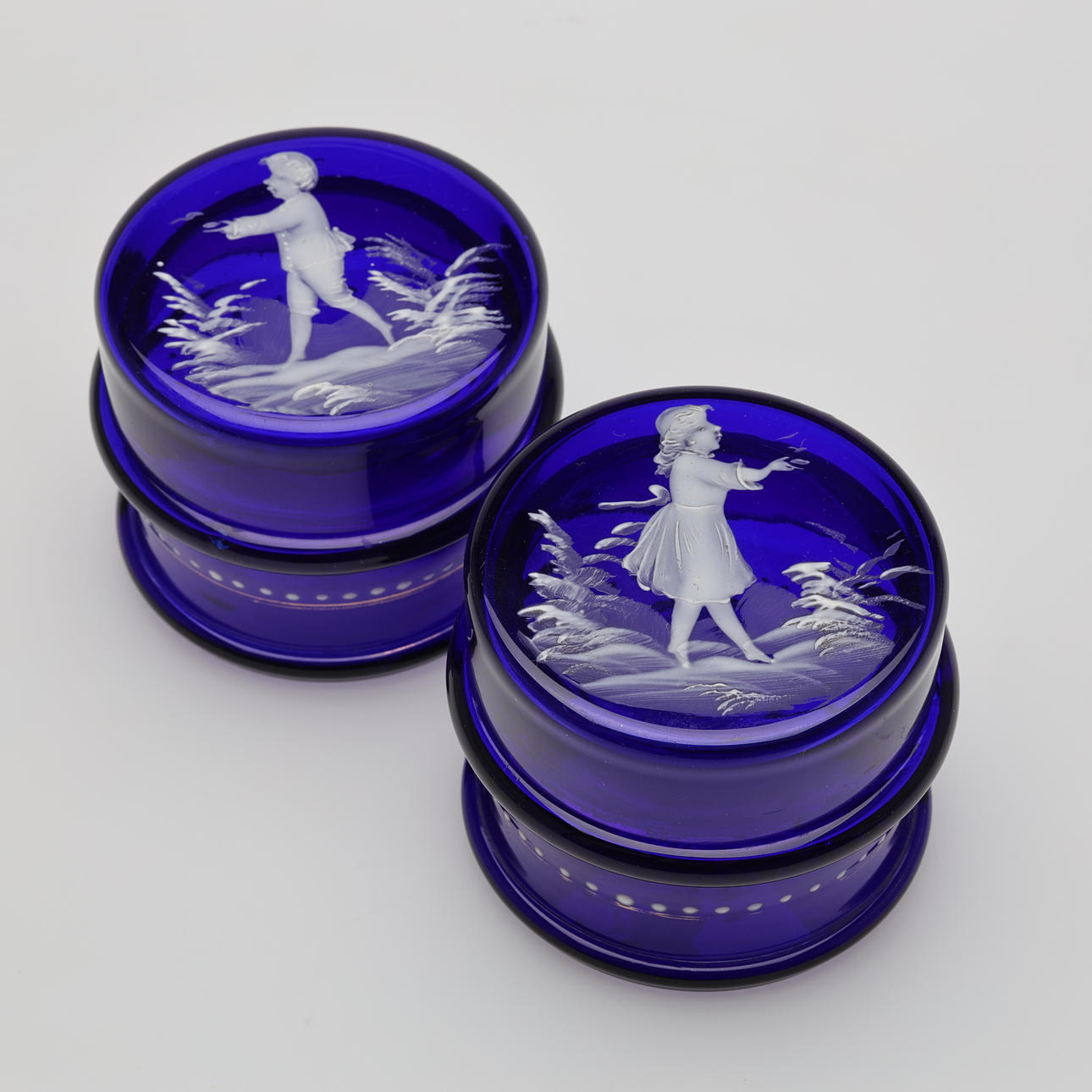 5043934. BOXES WITH LIDS, glass 2 pcs Mary Gregory style.