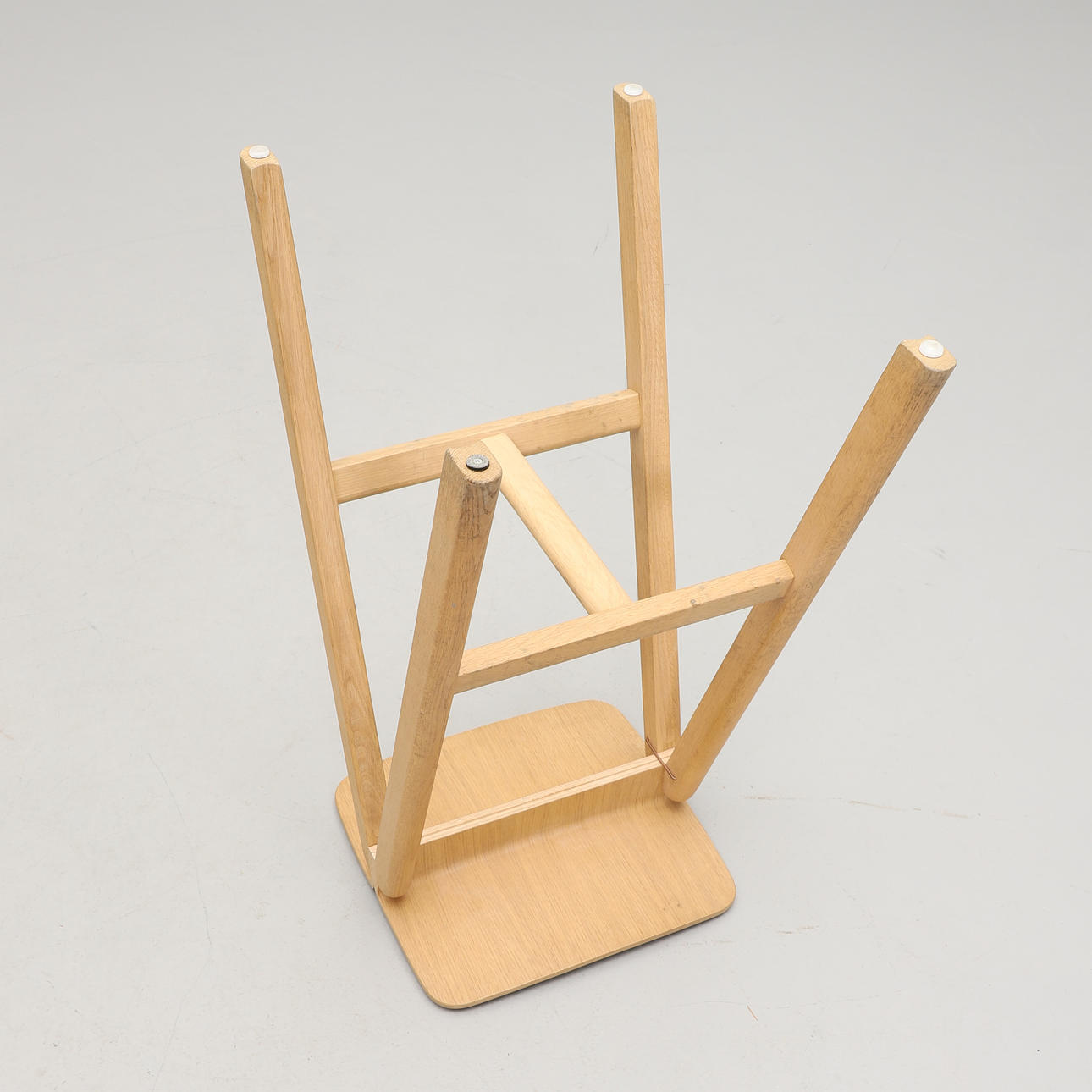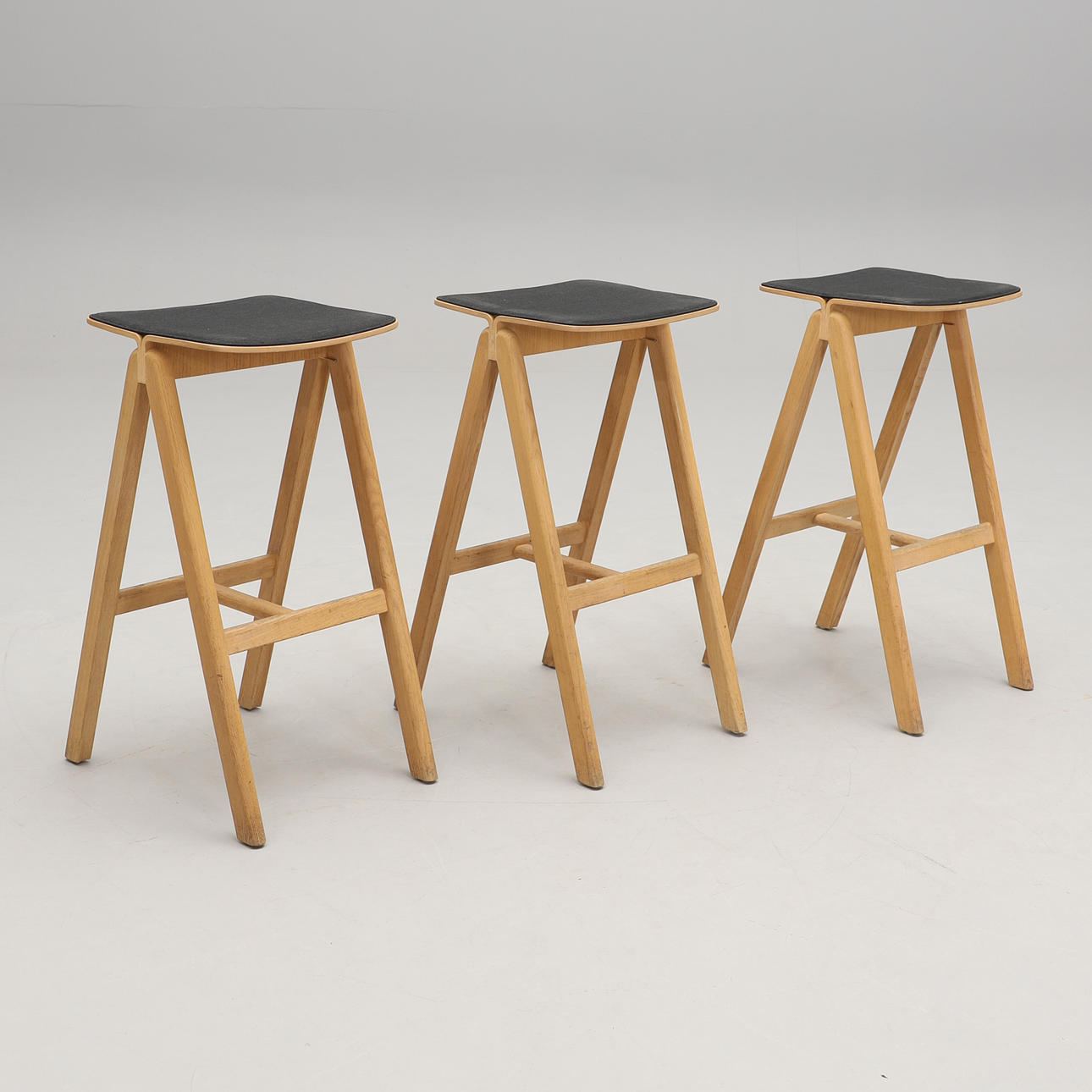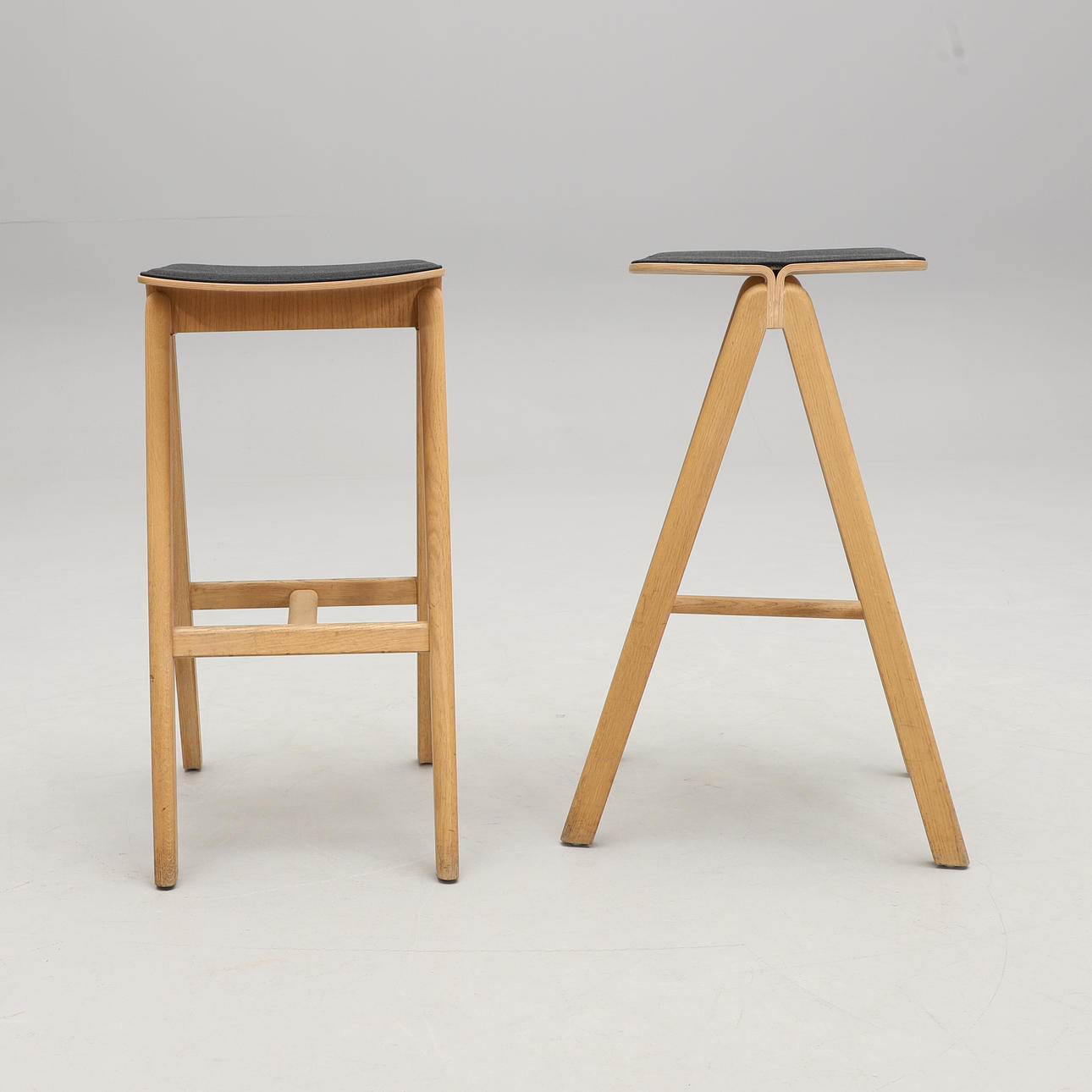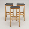 Seat with textile upholstery. Legs in oak. Dimensions: width 39, depth (legs) 51, height 76 cm.
