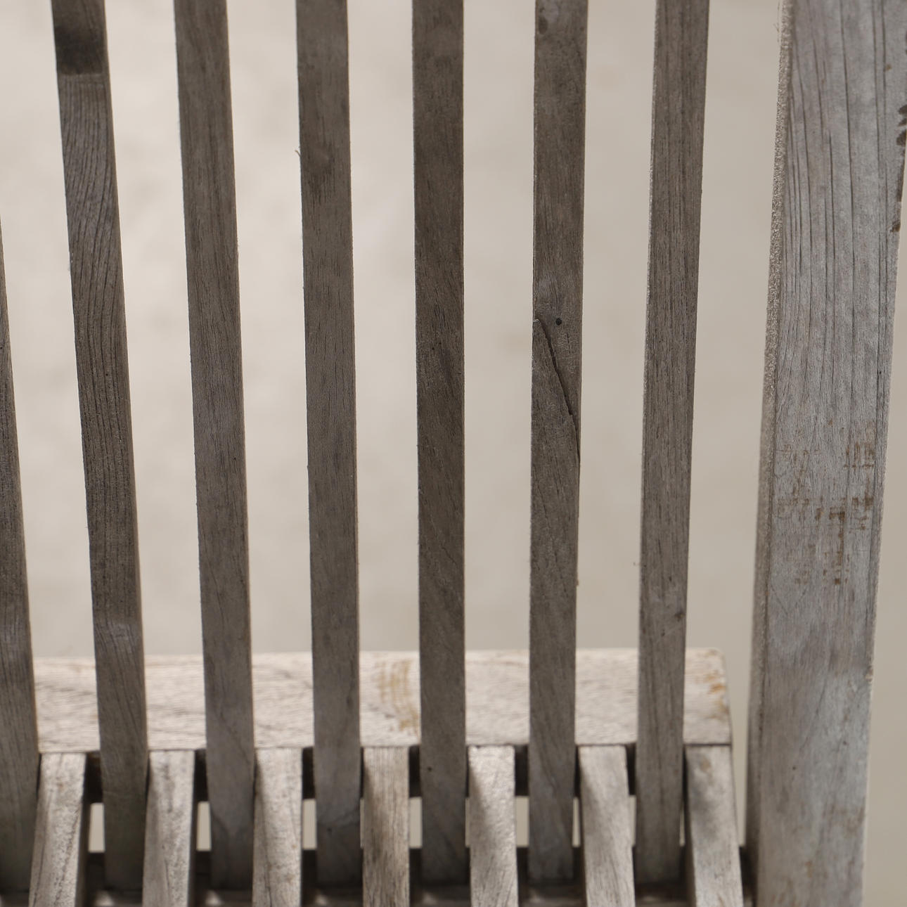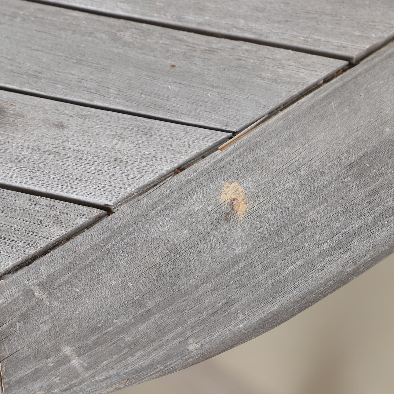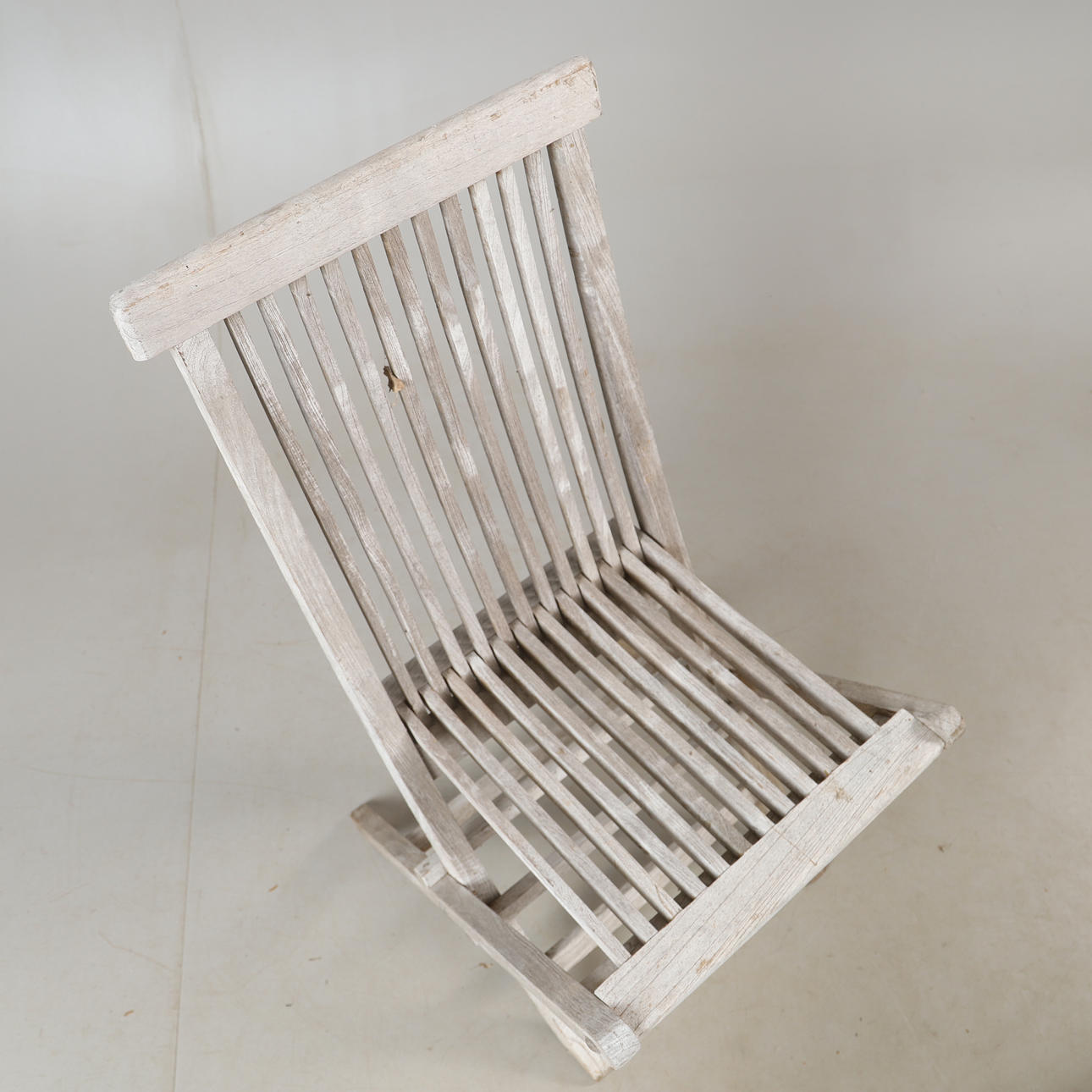 Usage and weather-related wear, screw missing and backrest spindle broken.