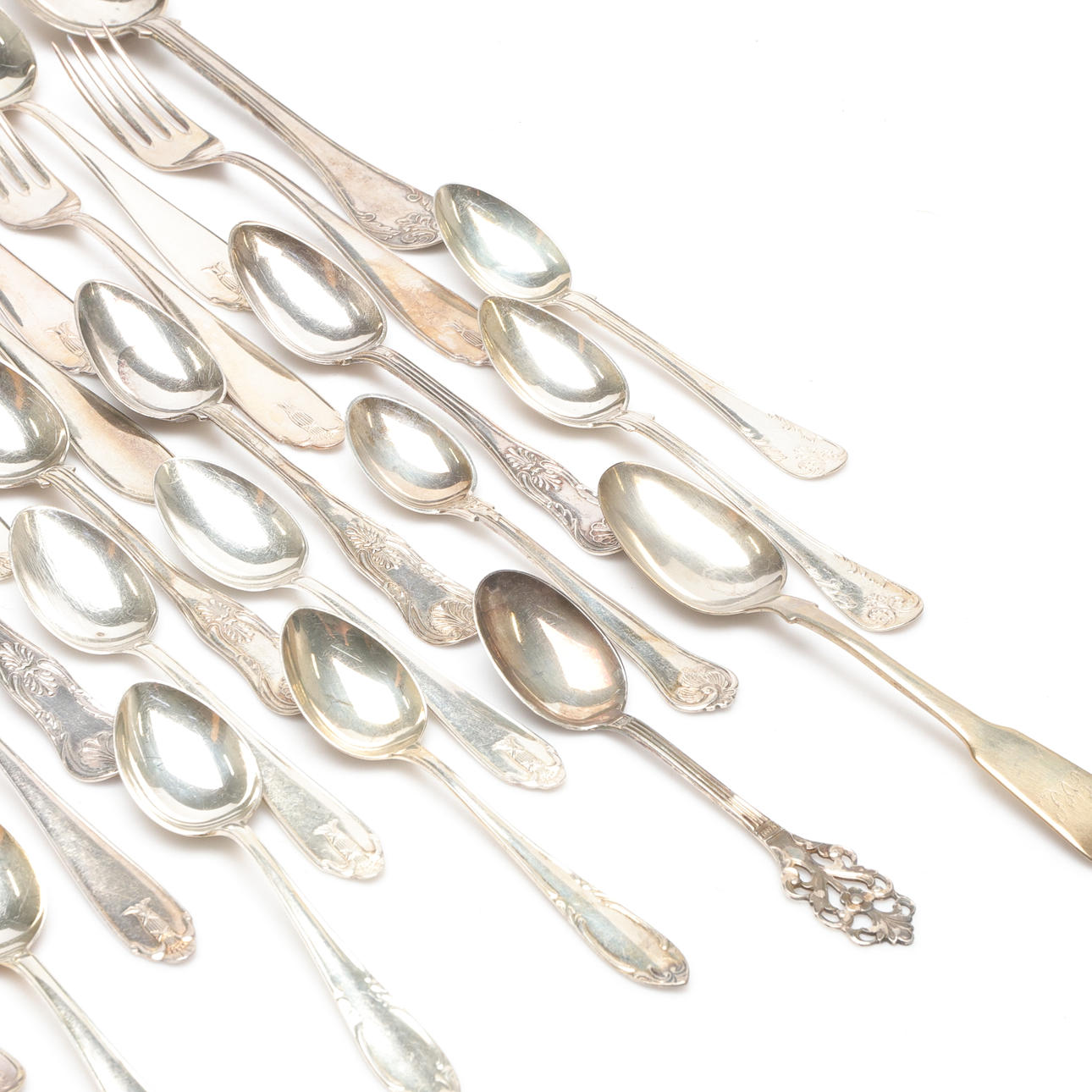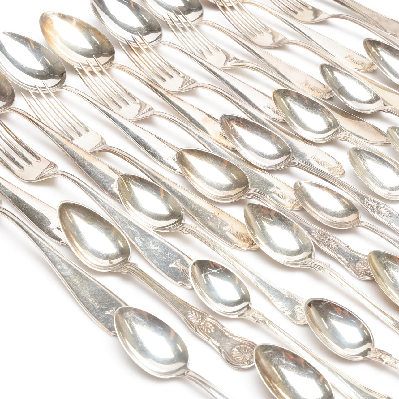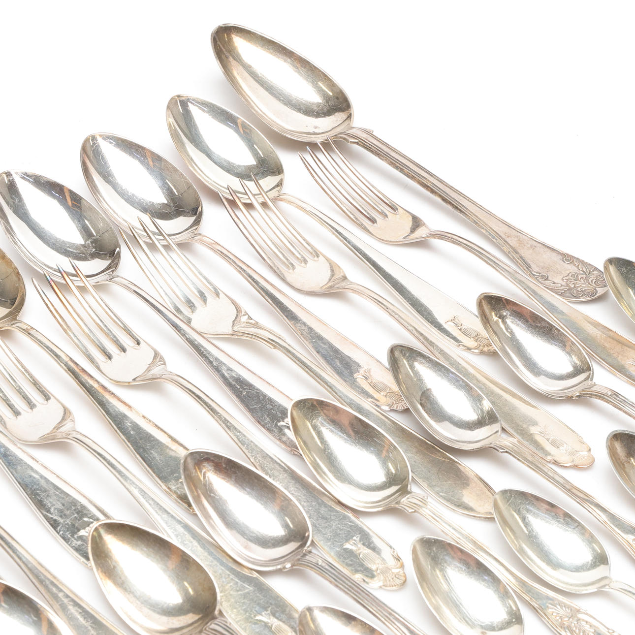Including forks, spoons in various sizes. Forks approximately 18 cm long. Spoons approximately 22 cm, 18 cm and 14 cm long.