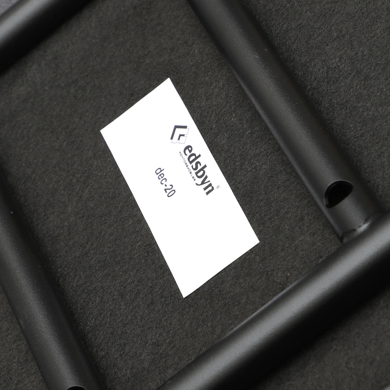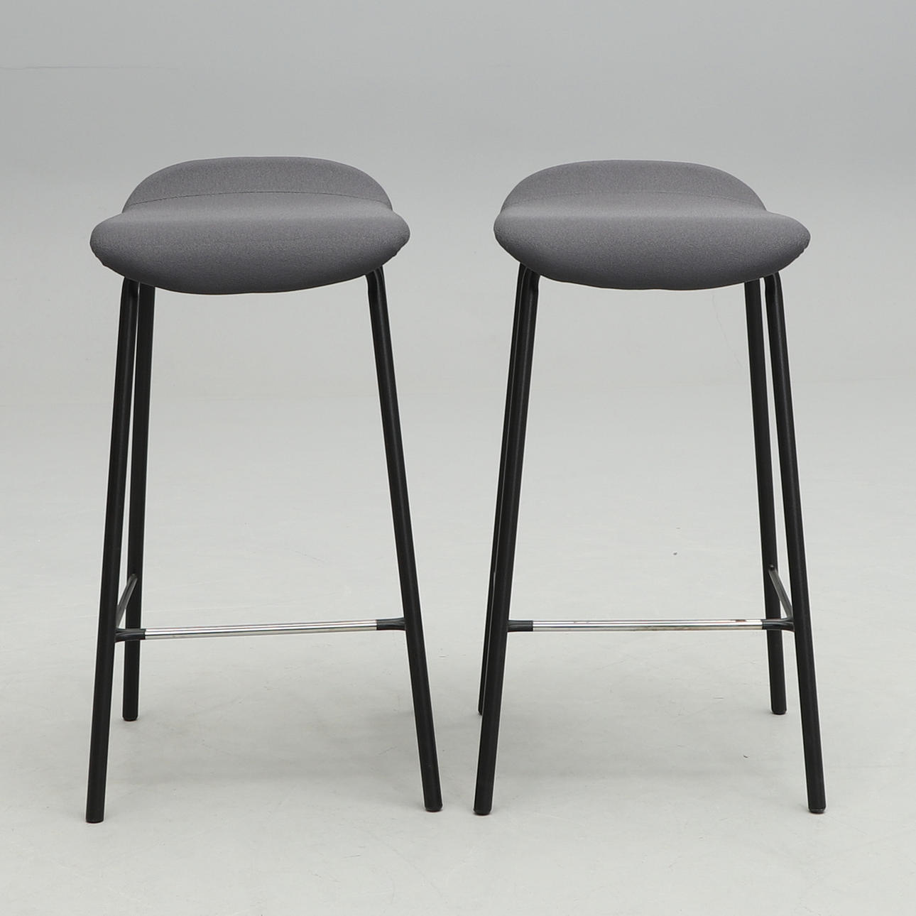 Fabric-upholstered seat. Legs in black-lacquered metal. Dimensions: width 36, depth 42, height 72 cm.