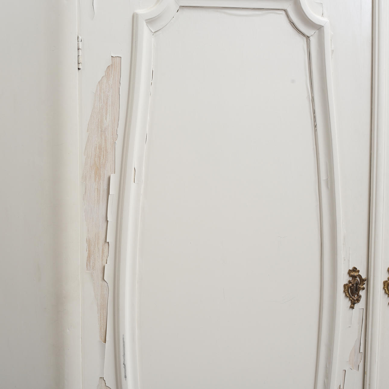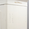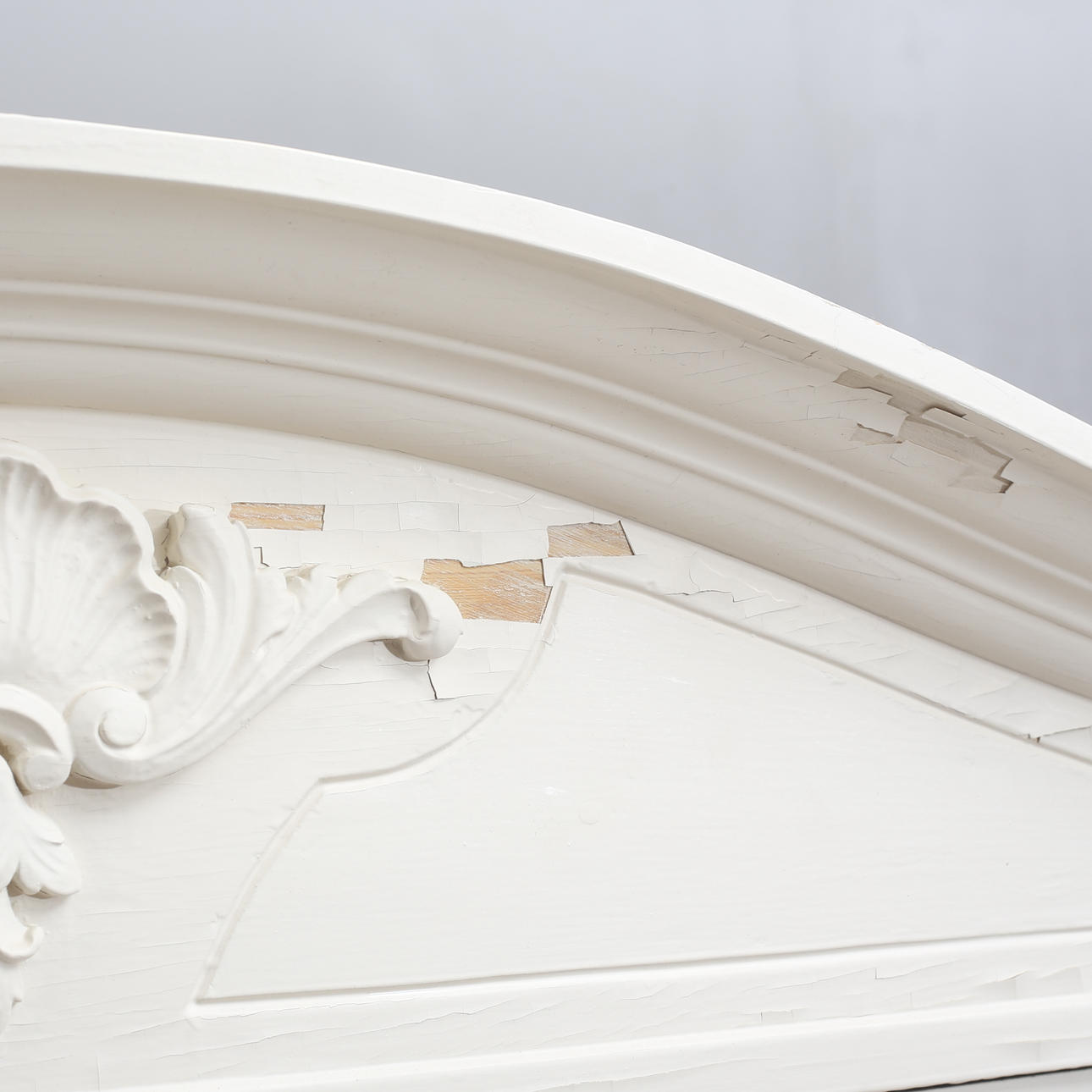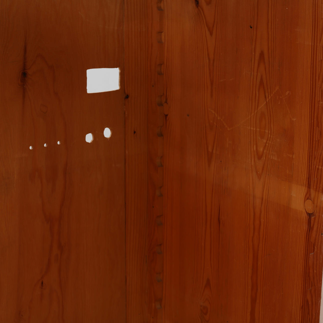Paint loss, dry cracks Shelf supports, poor fit. Hole in back panel Restoration object.