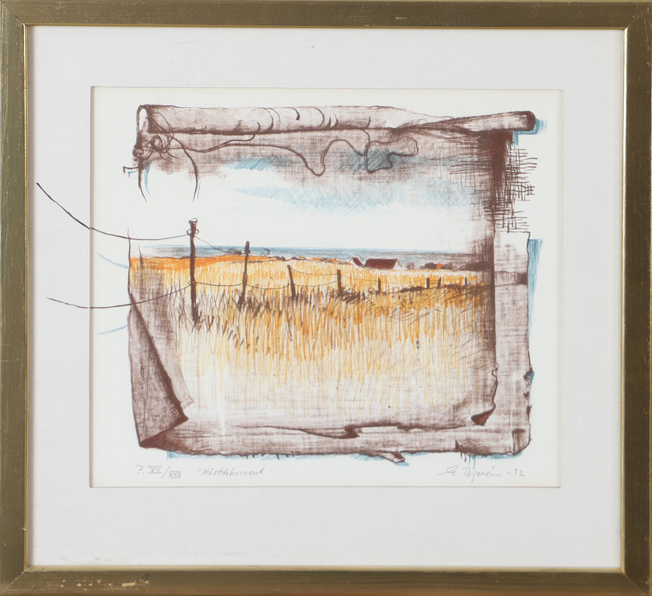 EKE BJERÉN. "Höstdokument", colour lithograph, signed E. Bjerén -92.