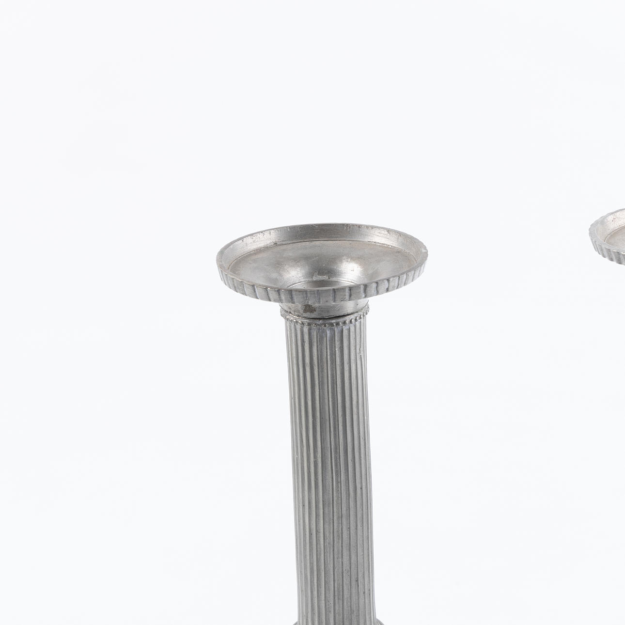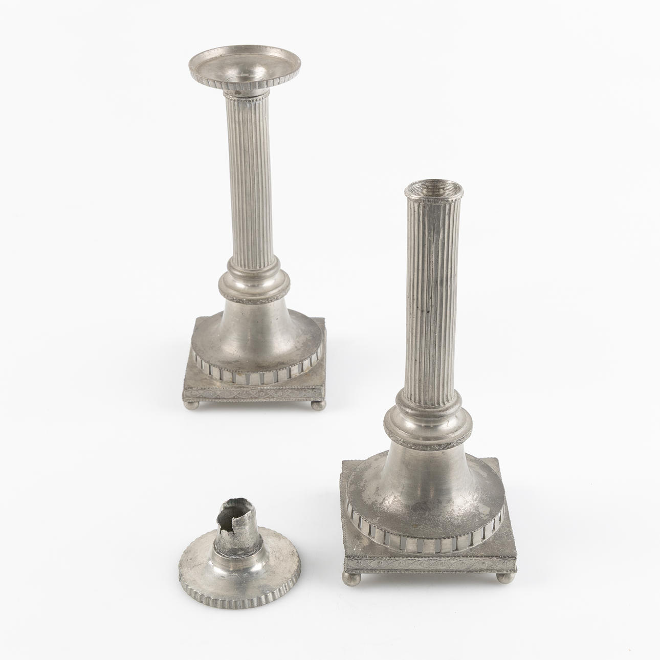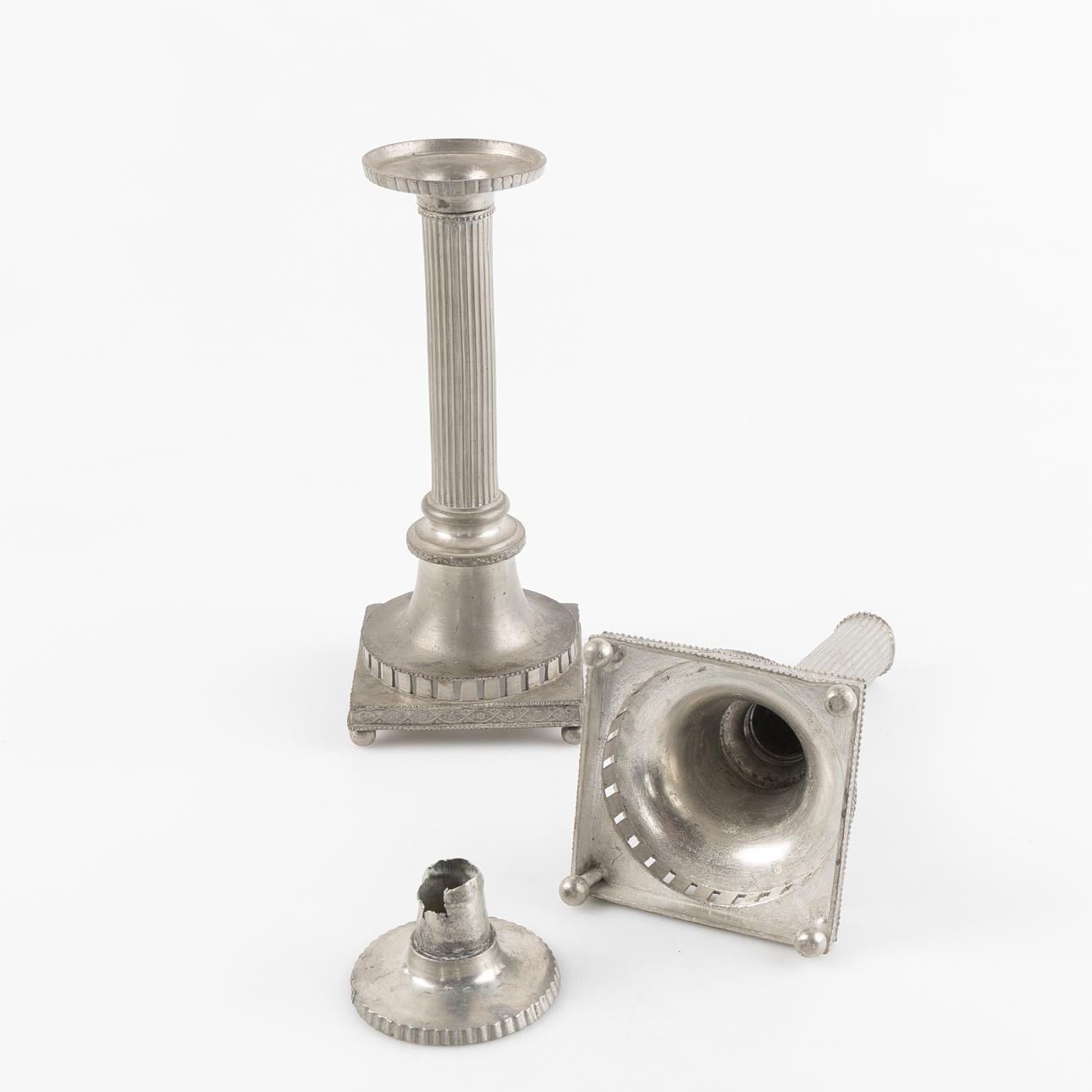 Stamped with the Three Crowns, square base on ball feet, loose sconces, height approx. 22, 9 x 9 cm.