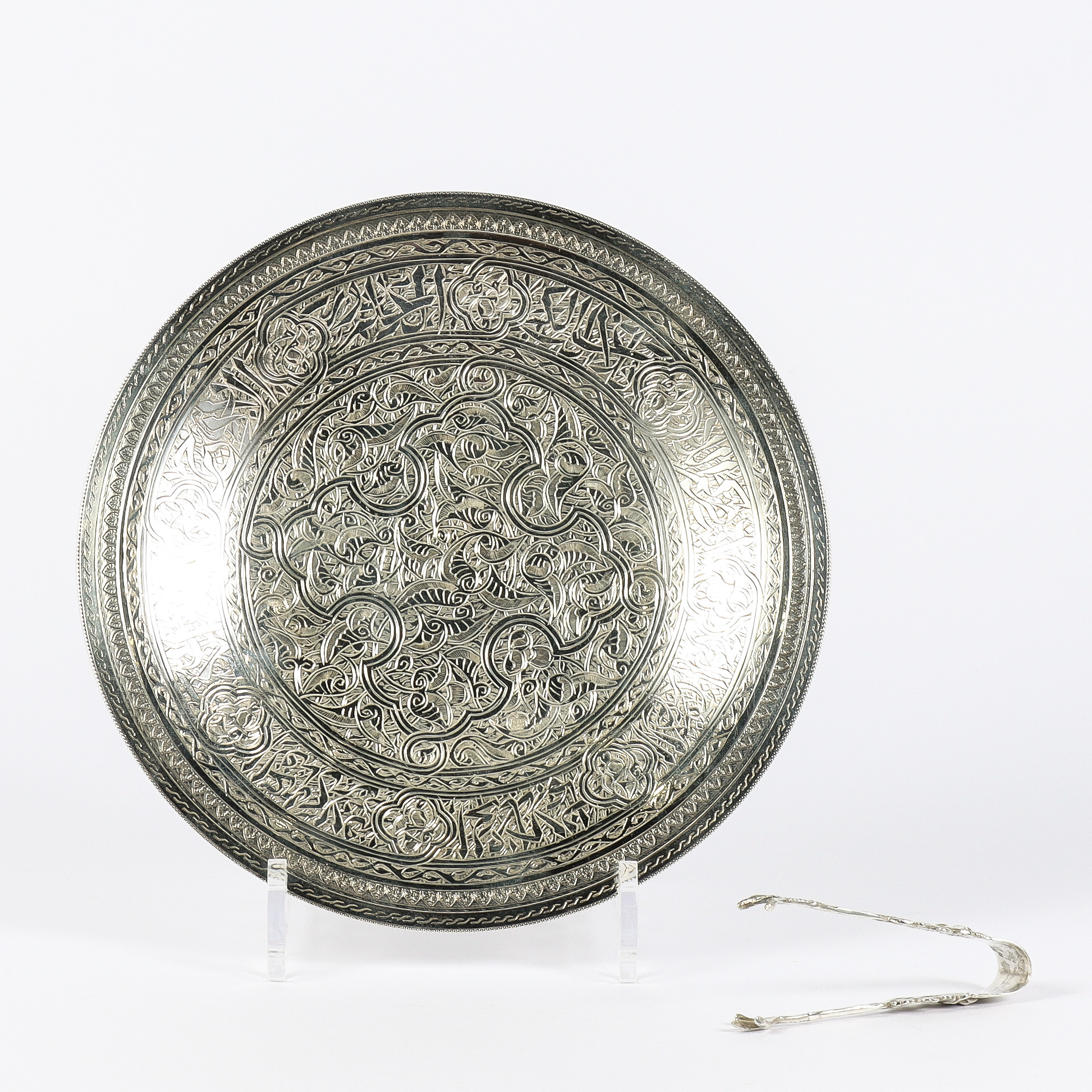 5044954. SILVER, dish and sugar tongs.