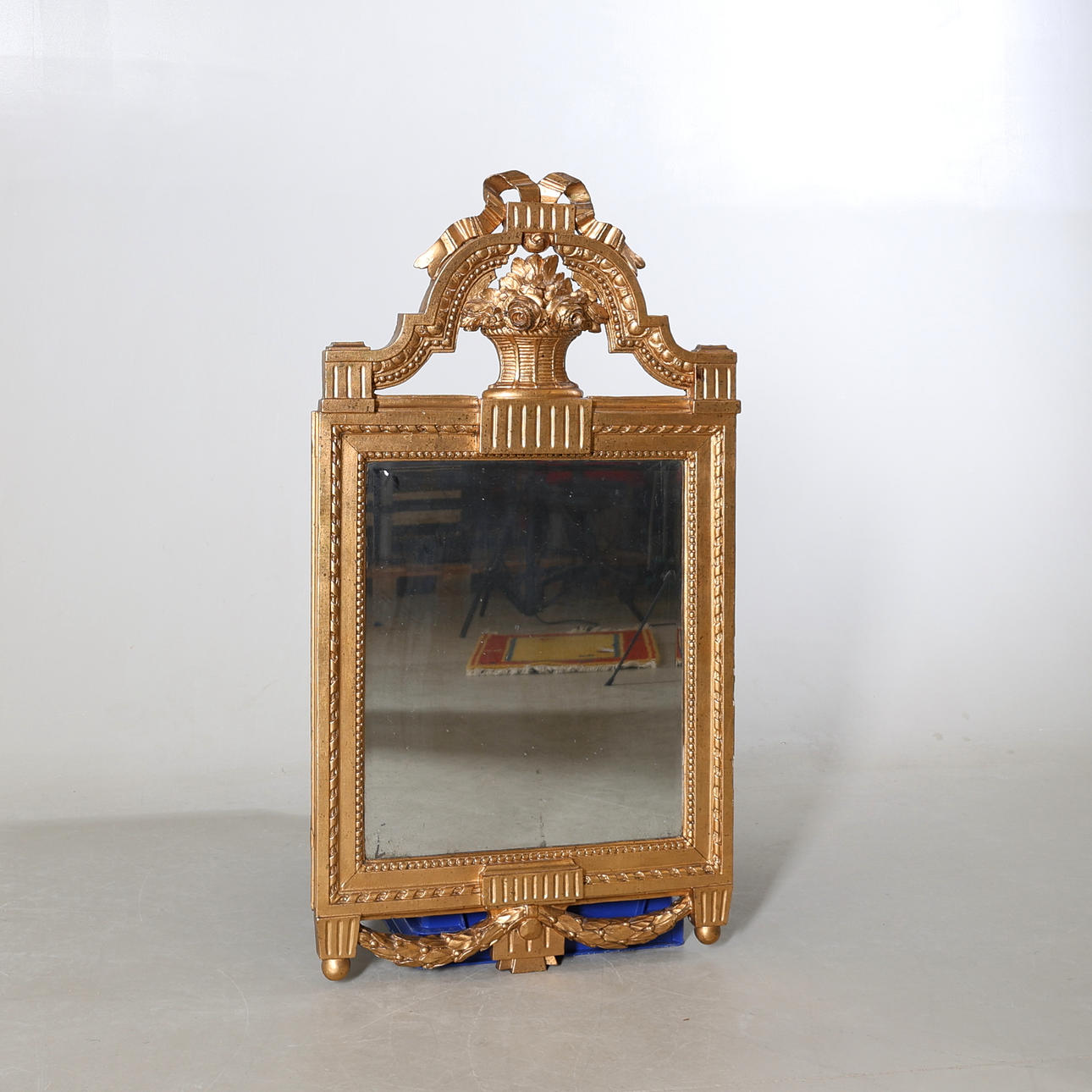 Gilt frame. Decoration of urn and festoons. Original glass.