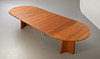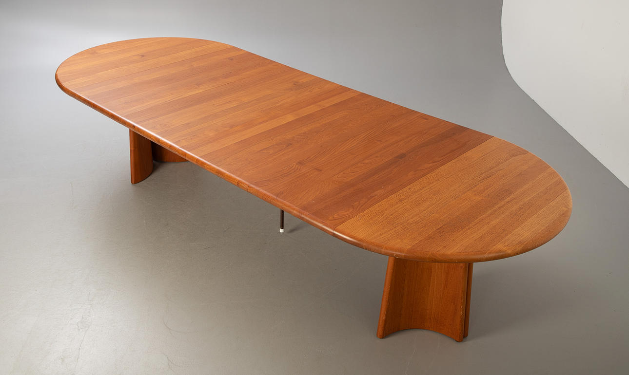 GLOSTRUP. Dining table, solid teak, with 4 extension leaves, Denmark.