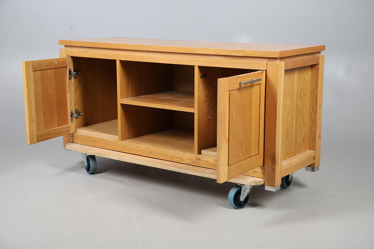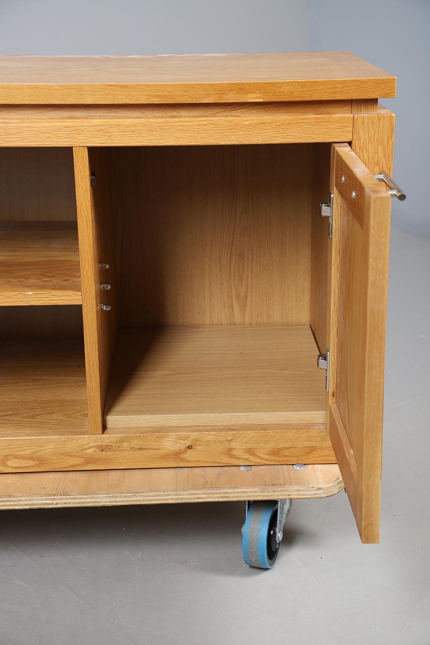 5045097. A MODERN LIGHT OAK LOW SIDEBOARD.