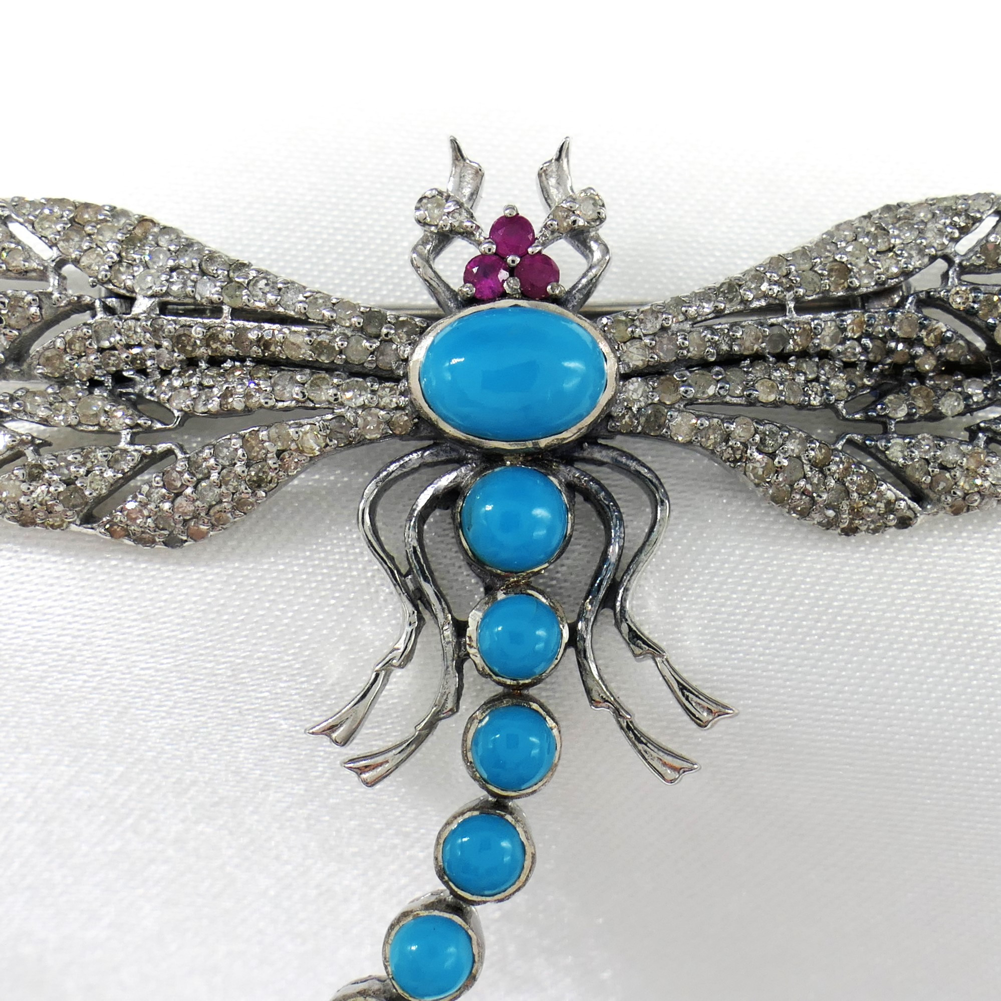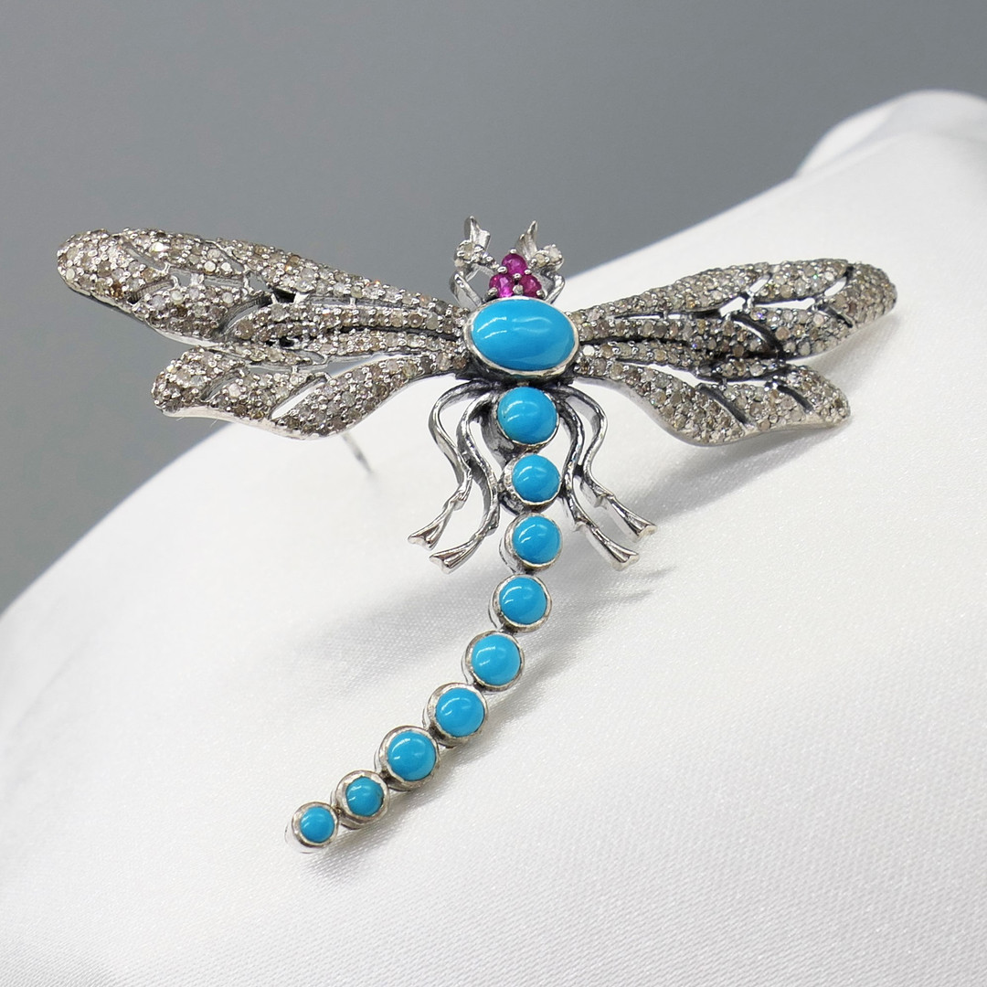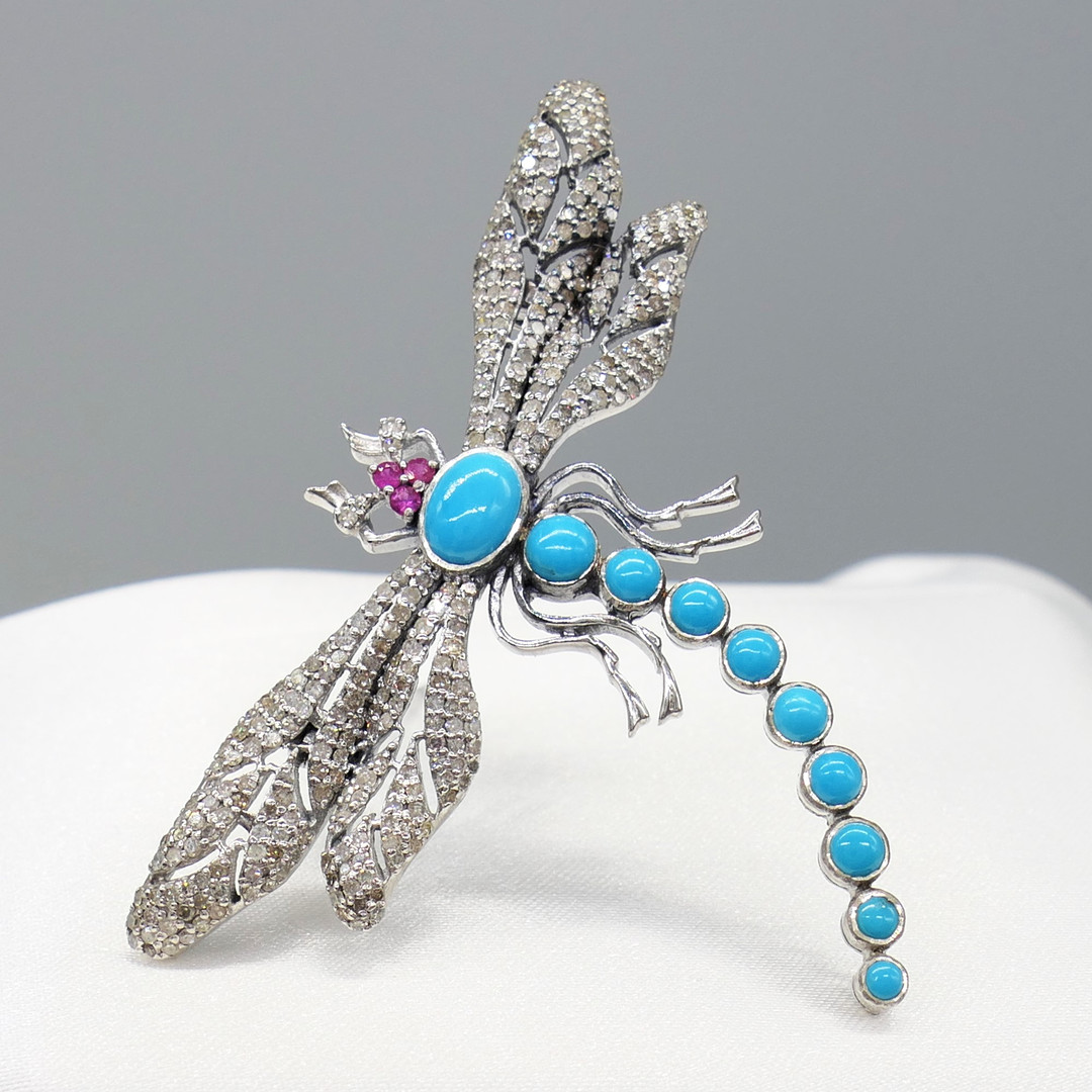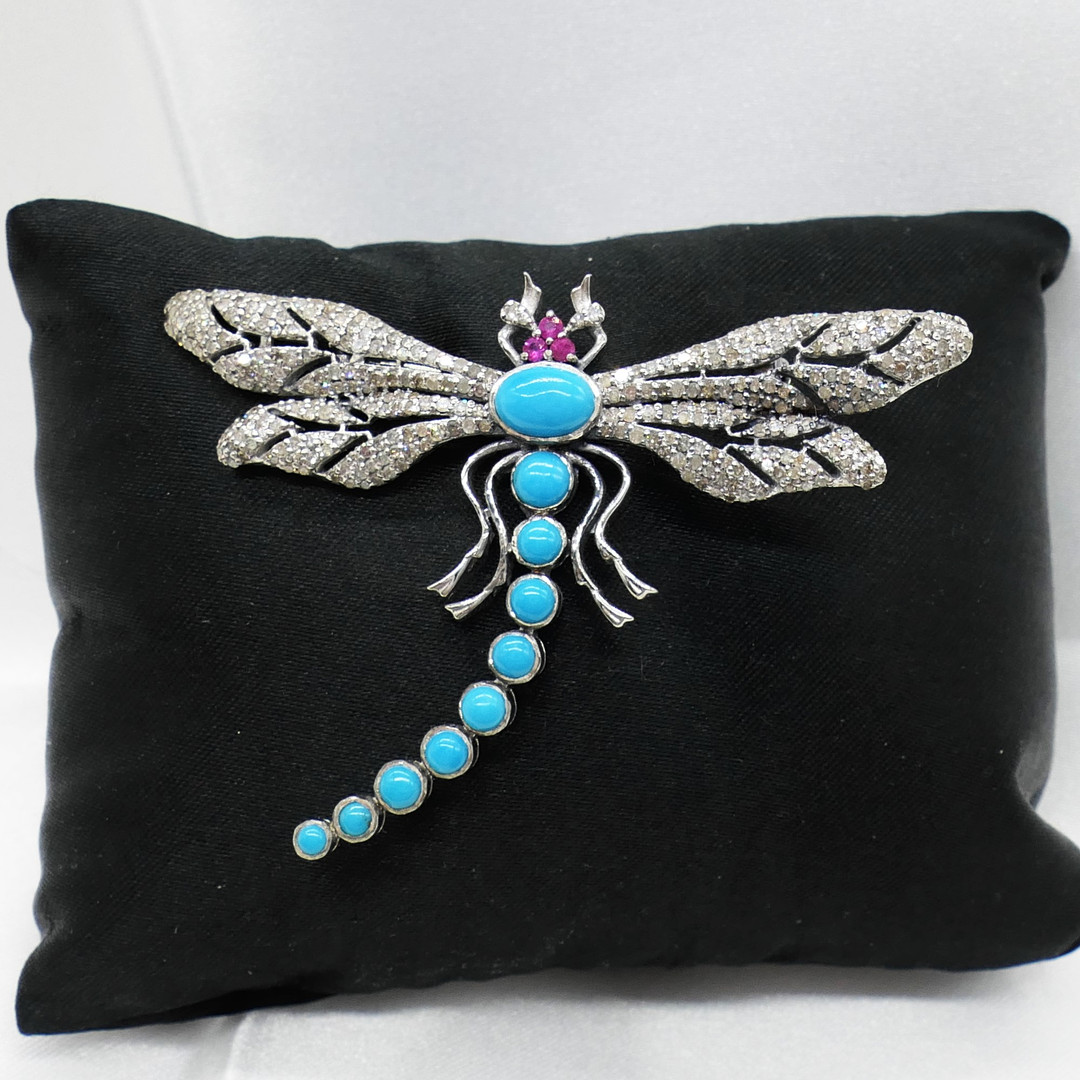 5045176. TURQUOISE & DIAMOND dragonfly brooch.