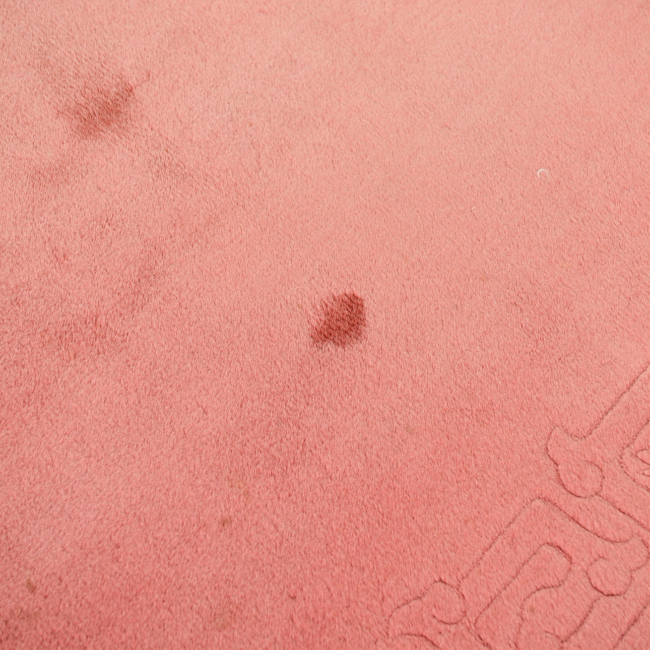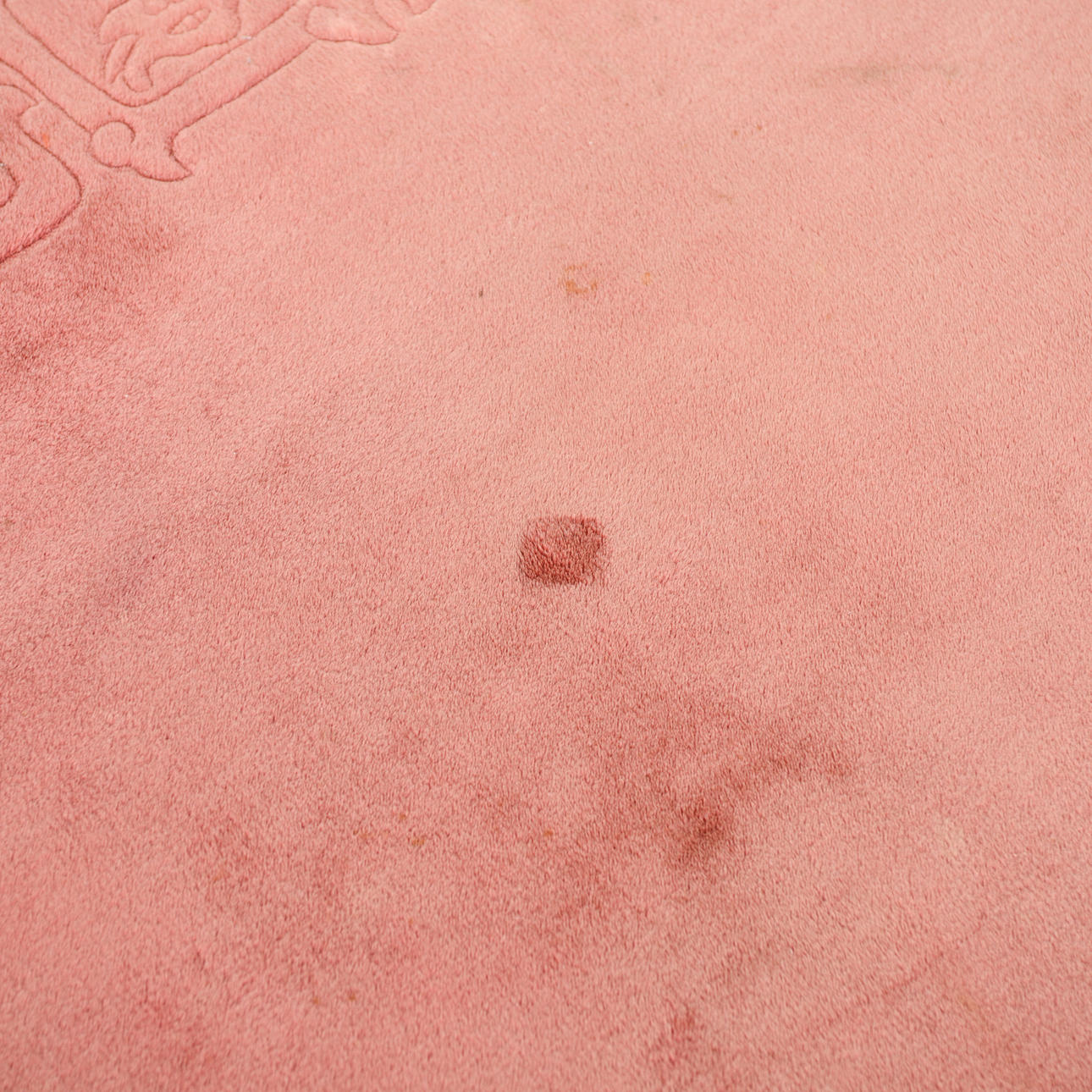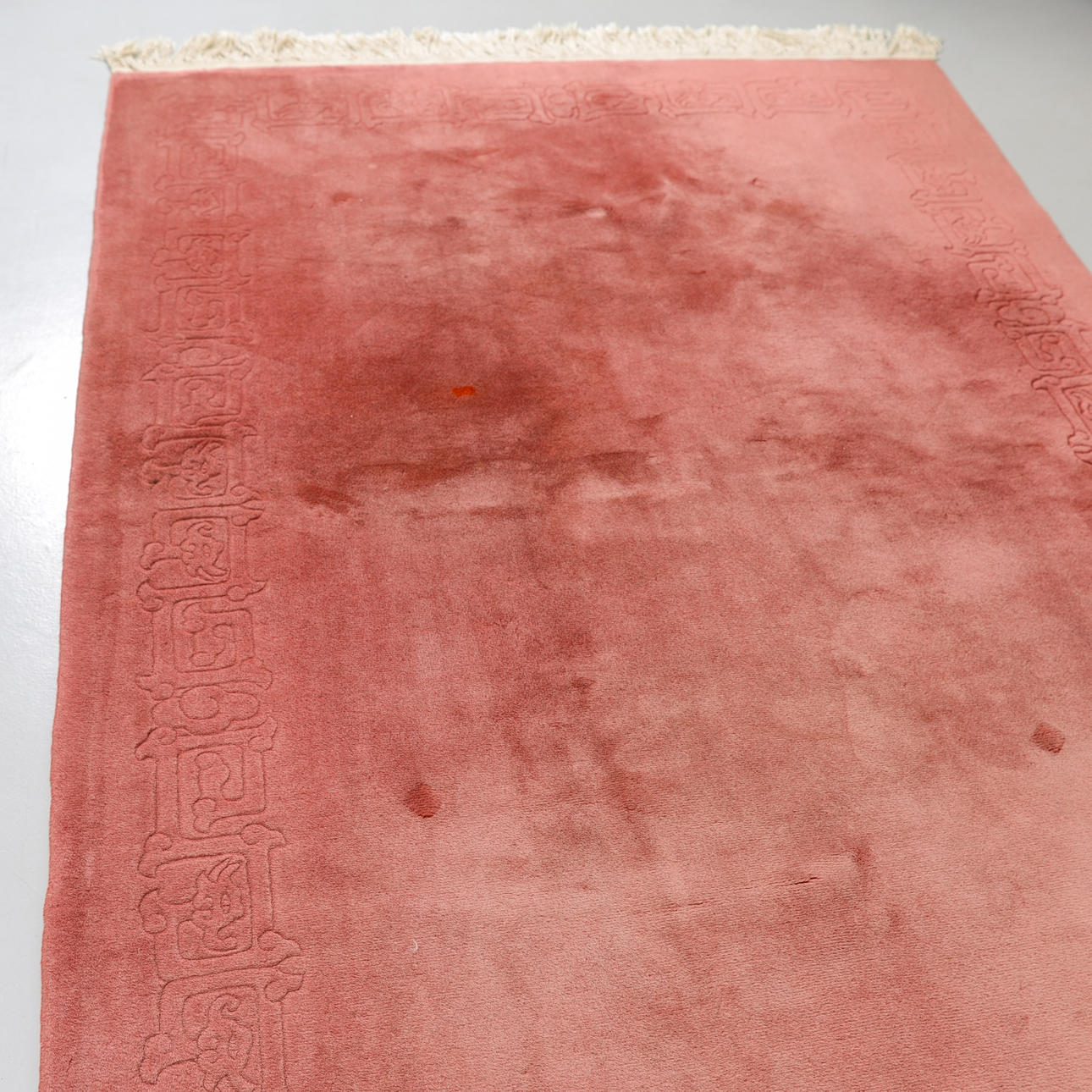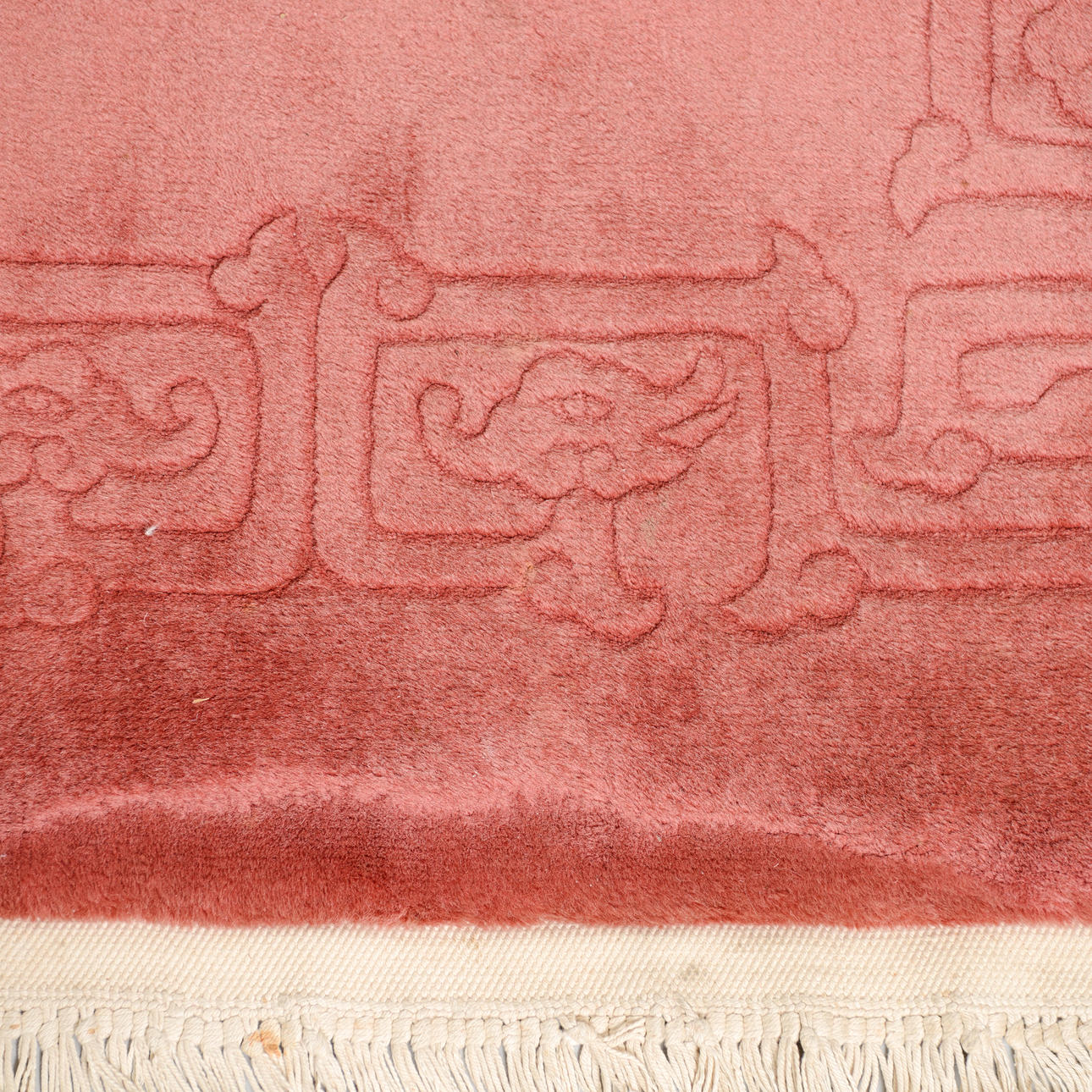 Monochrome field in a muted pink tone with a discreet, tone-on-tone woven border along the edges.