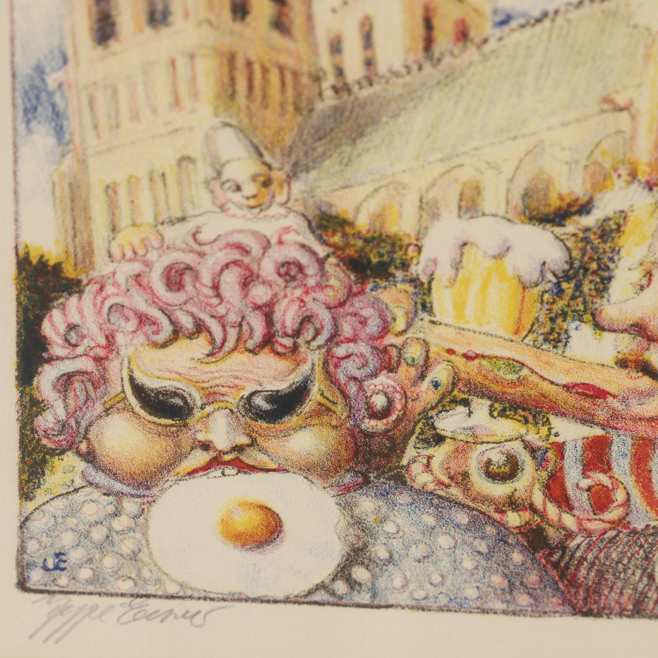JEPPE EISNER. Figure composition, colour lithograph, signed.