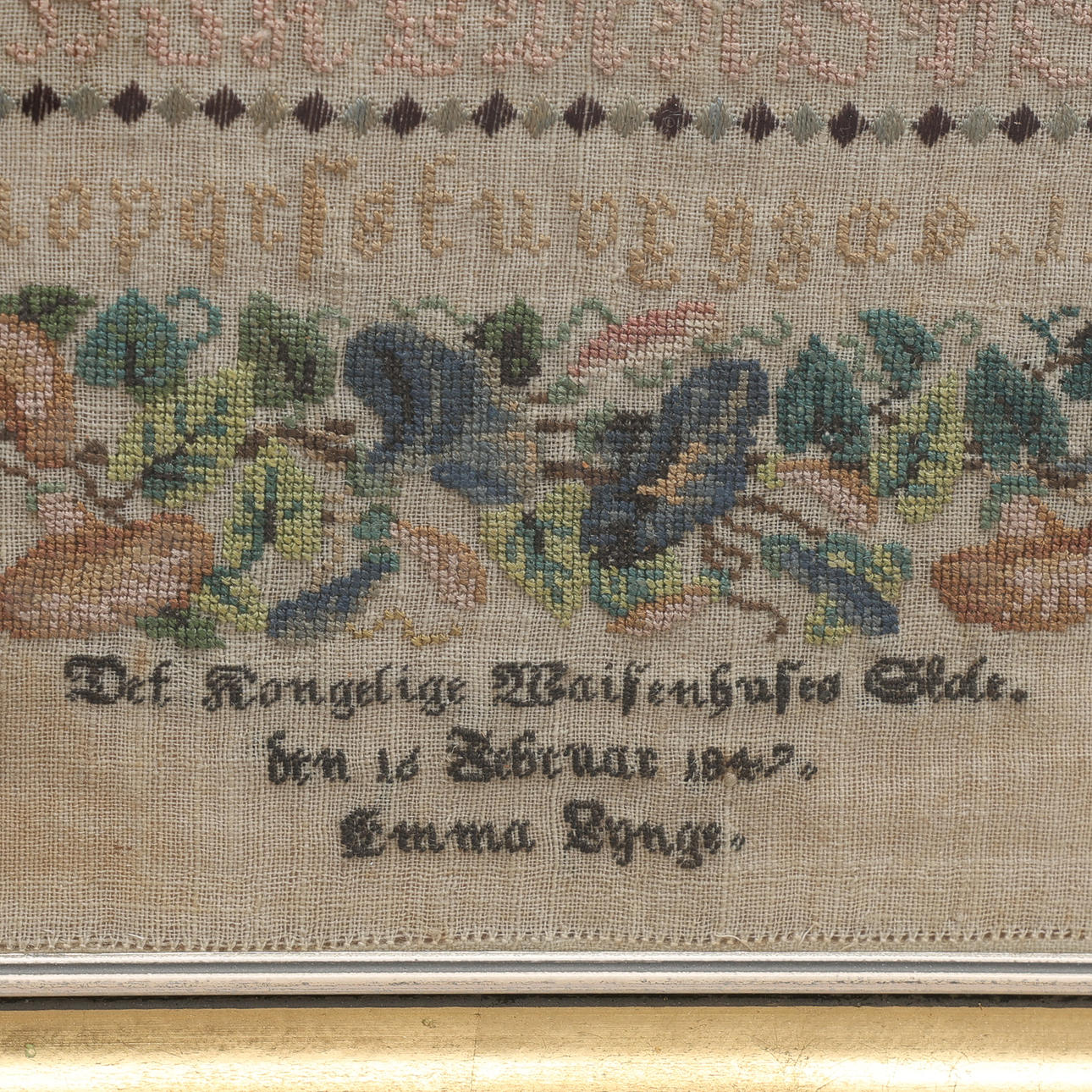 Emma Lynge, Det Kongelige Wajsenhus Skole, dated 16 February 1847, frame dimensions approx. 31x34 cm.