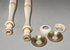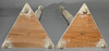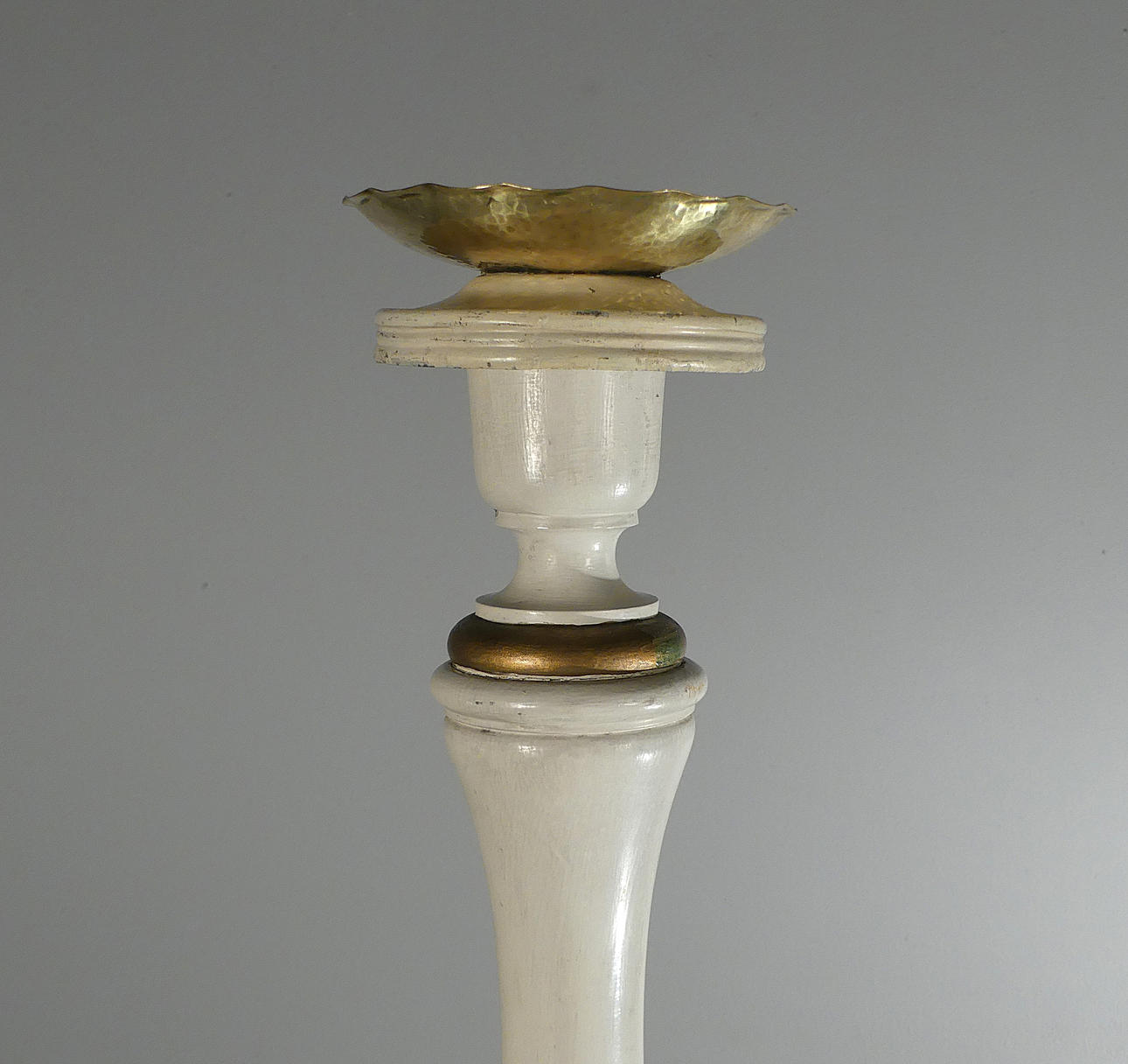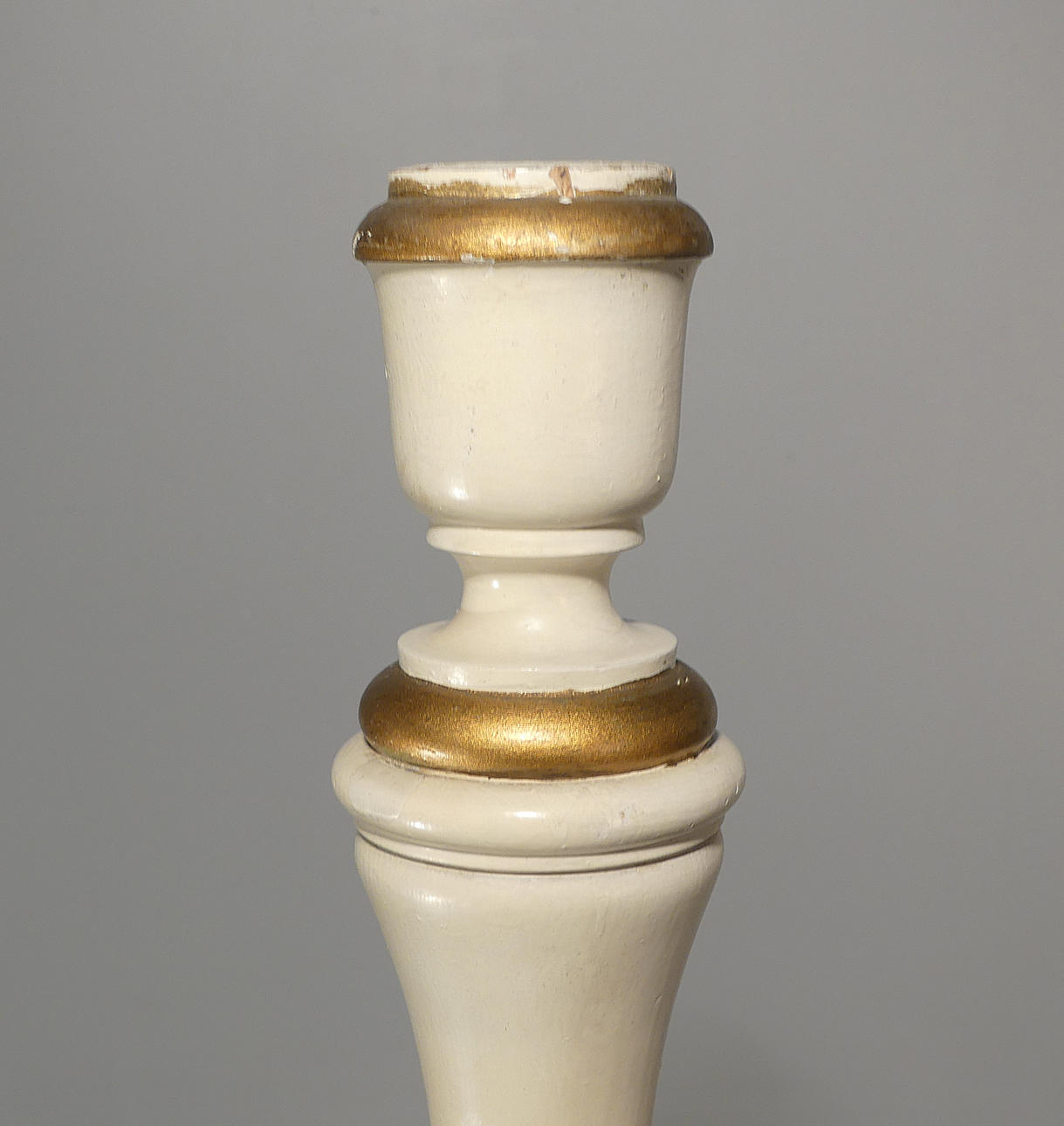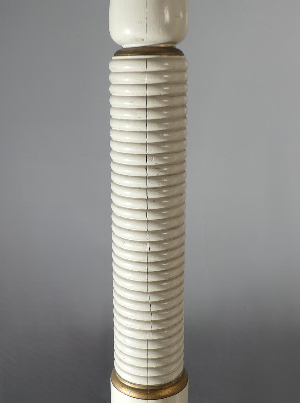 Painted wood with loose metal bobeches. Height approx. 136 cm, triangular base 42 cm.