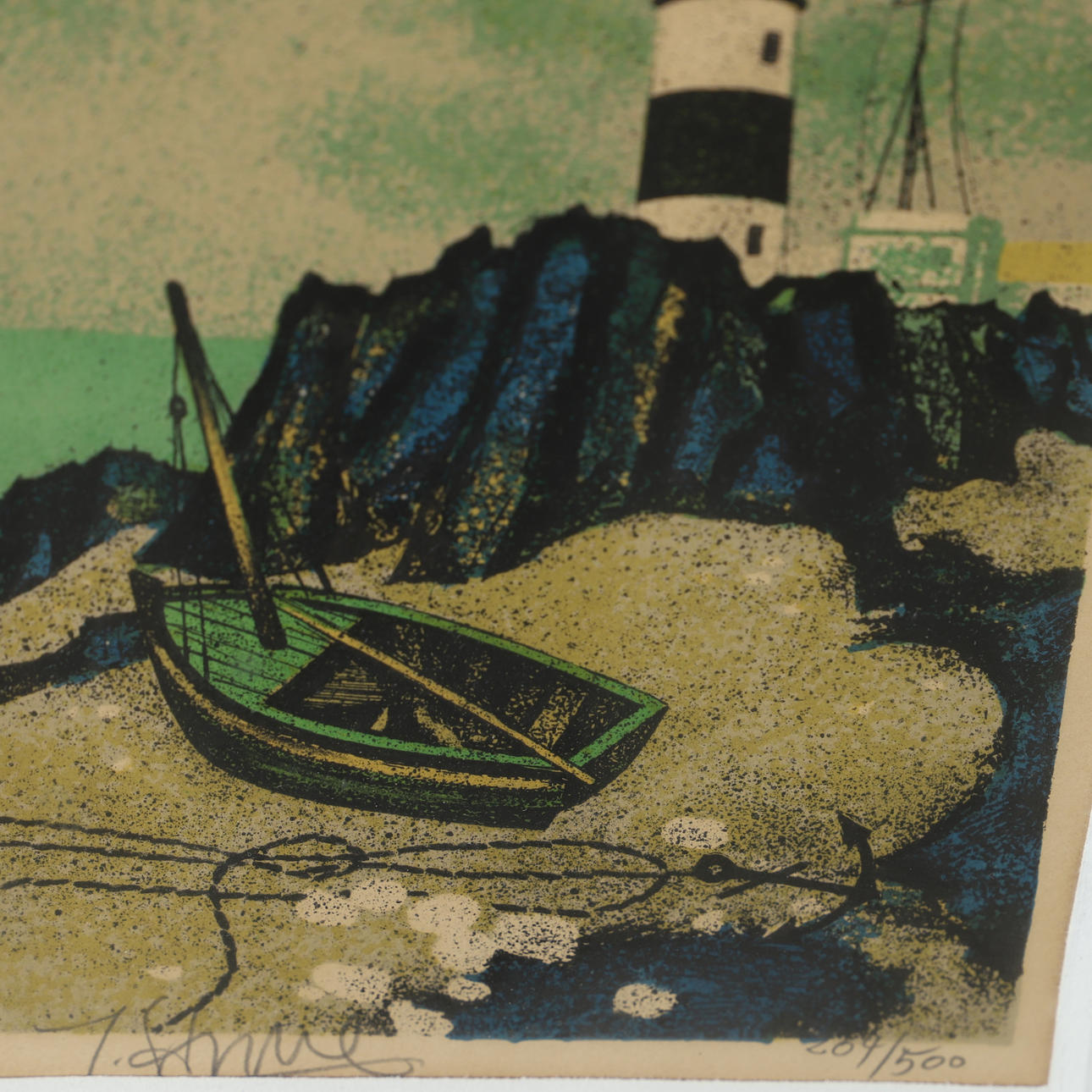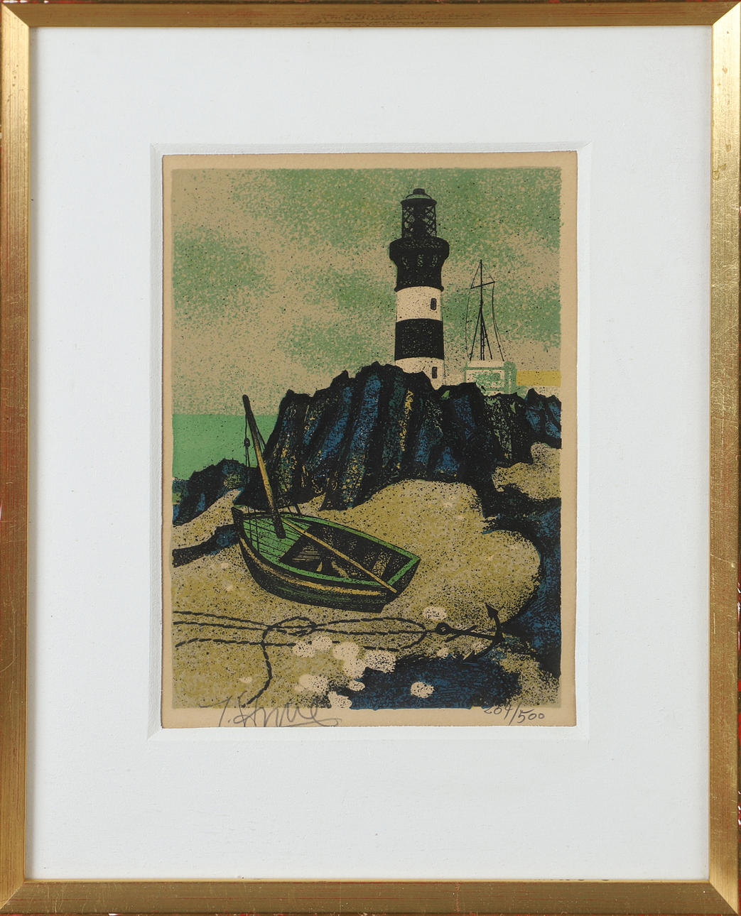 YVES GANNE. Lighthouse, colour lithograph, signed.