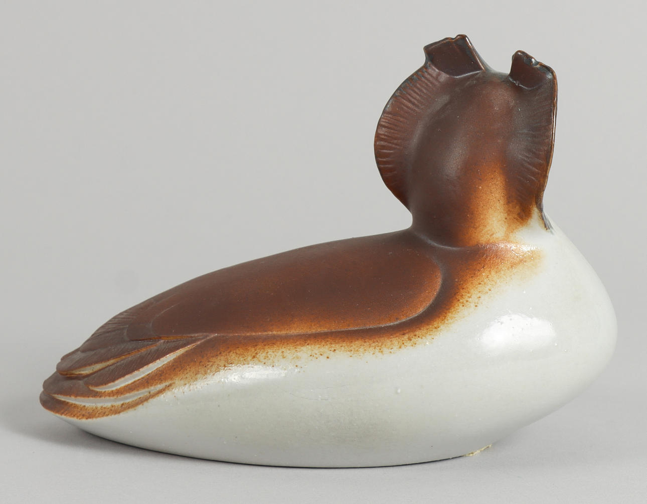 PAUL HOFF. Great crested grebe, ceramic, Gustavsberg, signed.