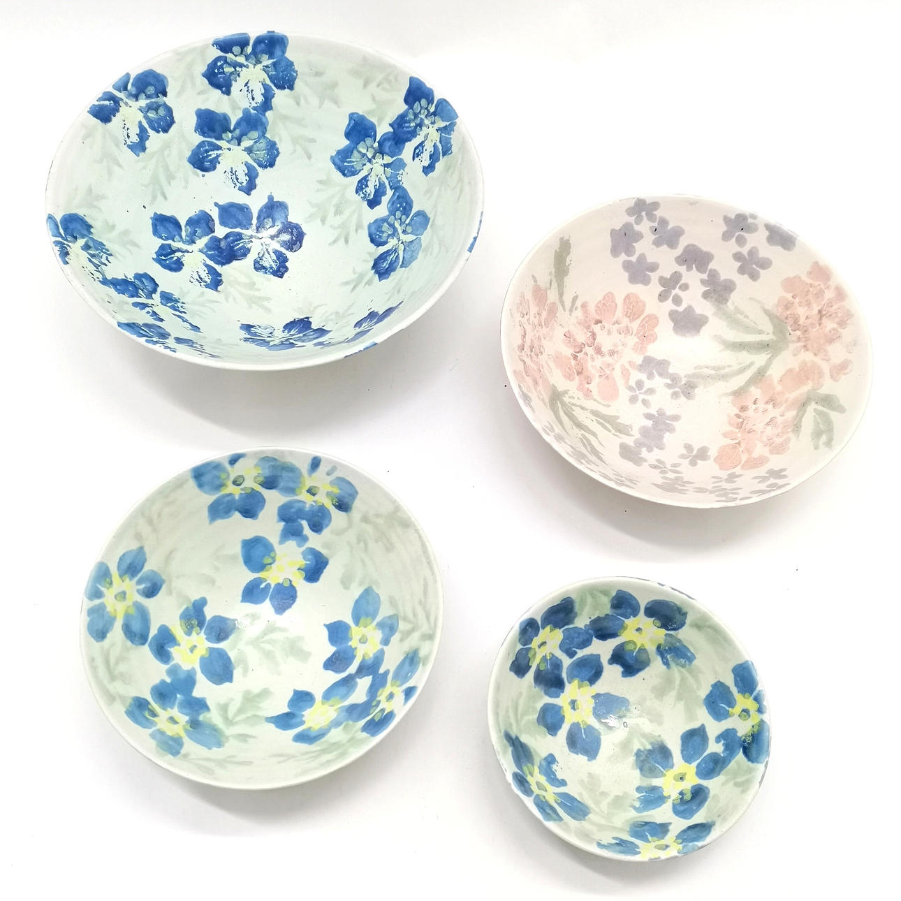 4 x Studio pottery flared floral pattern bowls - largest 26cm x 11cm high ~ no obvious damage.