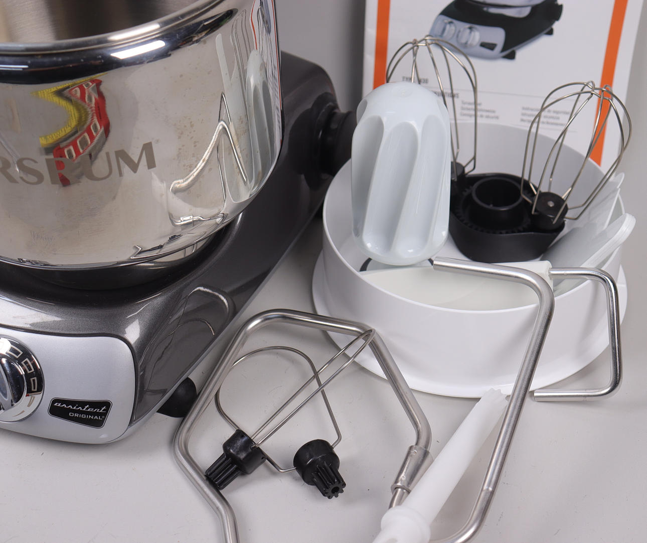 Kitchen machine with various accessories.