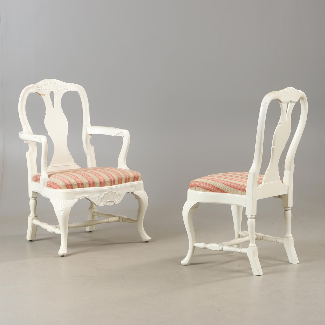 5048270. DINING SET, 9 pieces, white-painted, Rococo style.