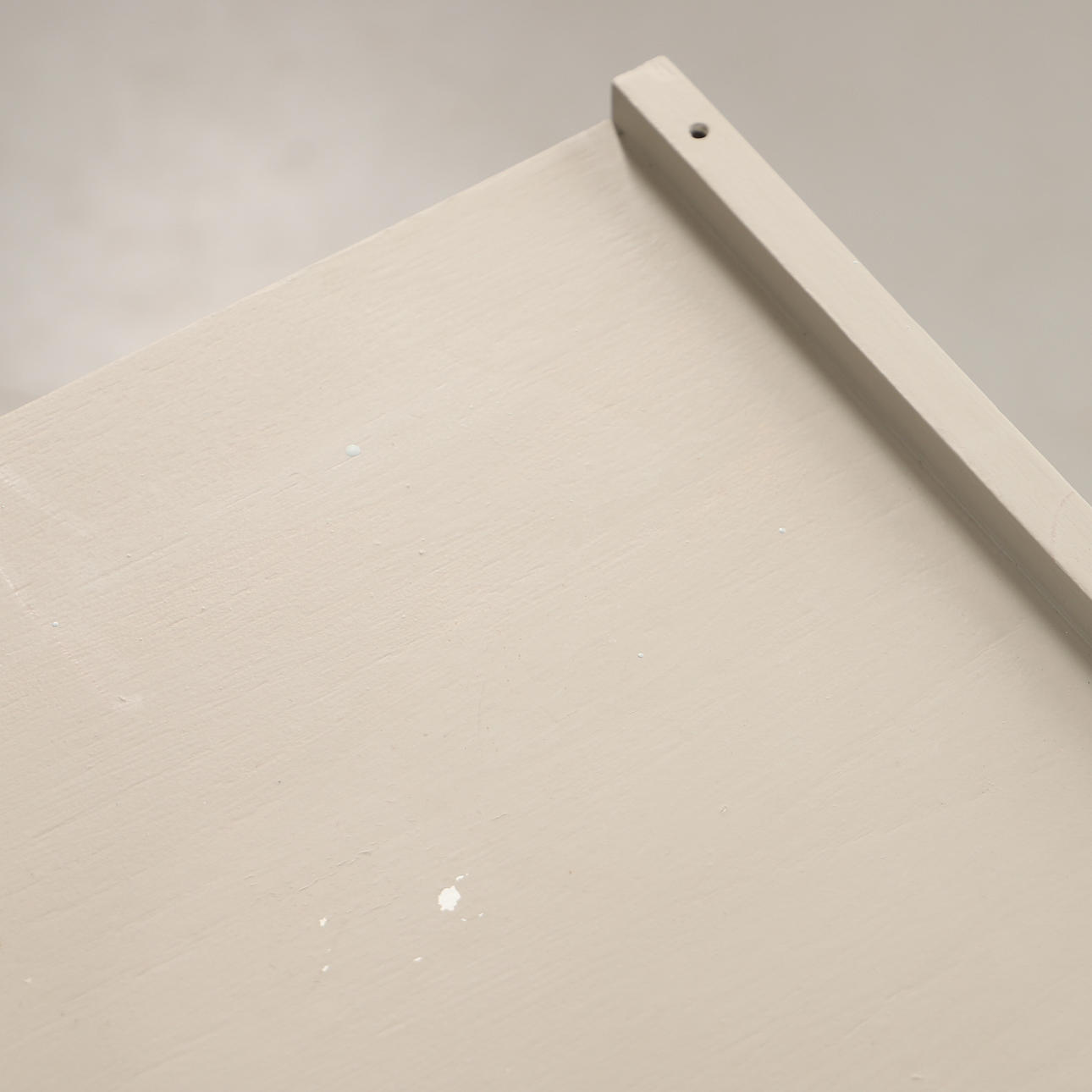 Later painted, holes from a top section, marks and holes in the back panel.