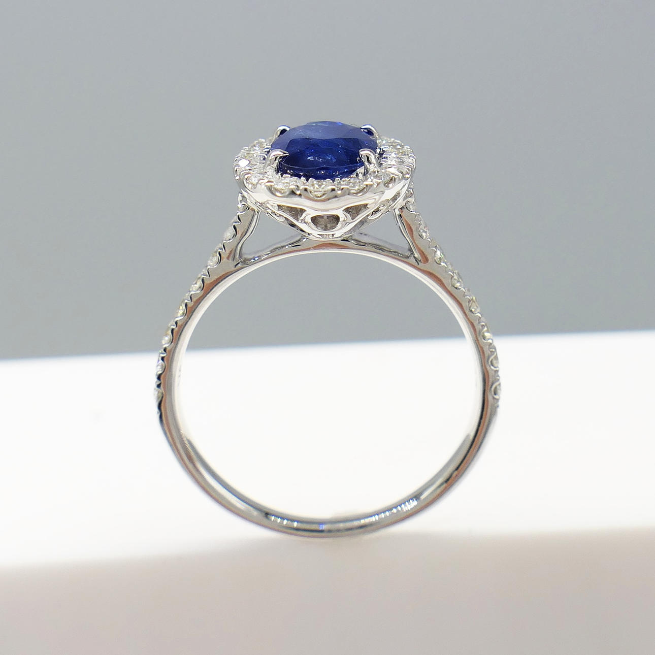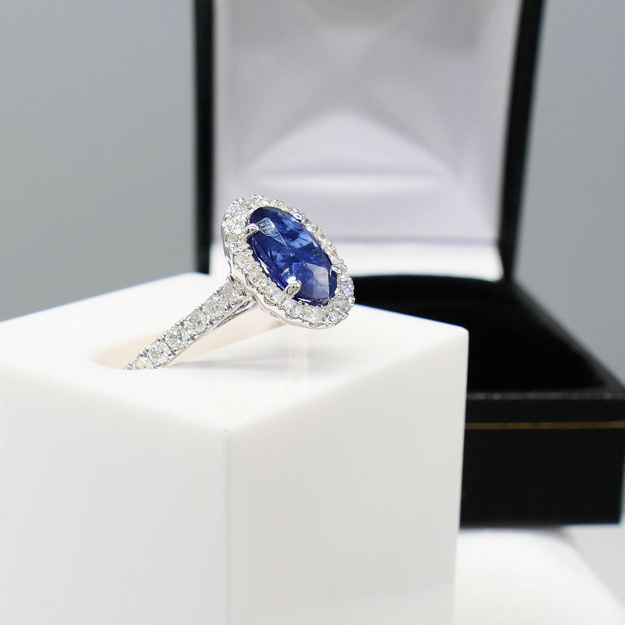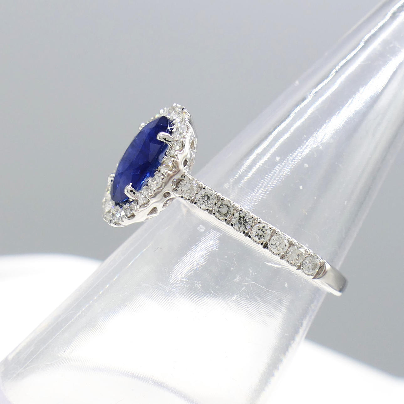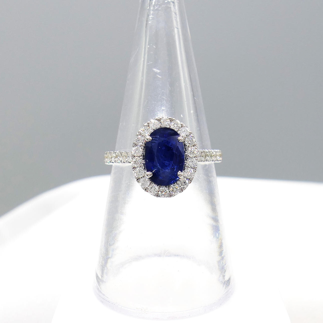 Blue sapphire gemstone: natural; oval cut; 1.45 carat; good colour saturation; claw set