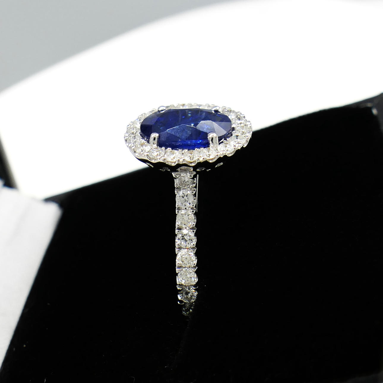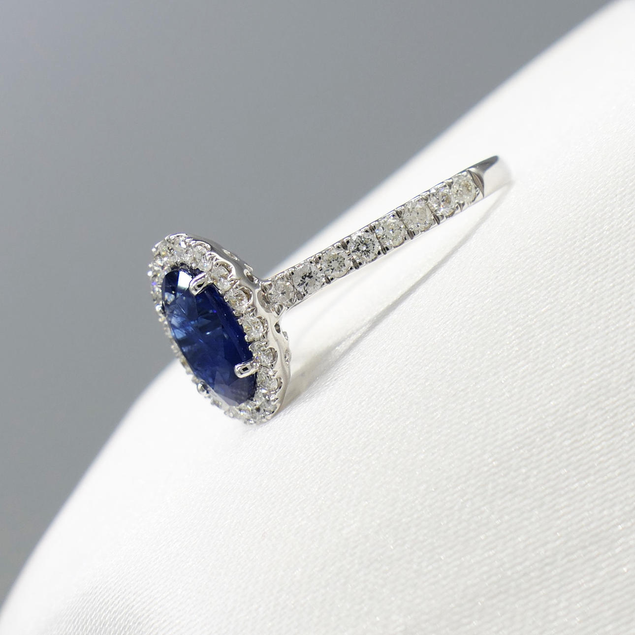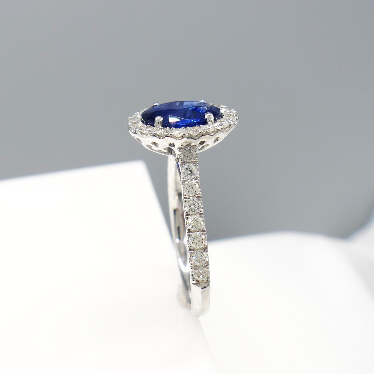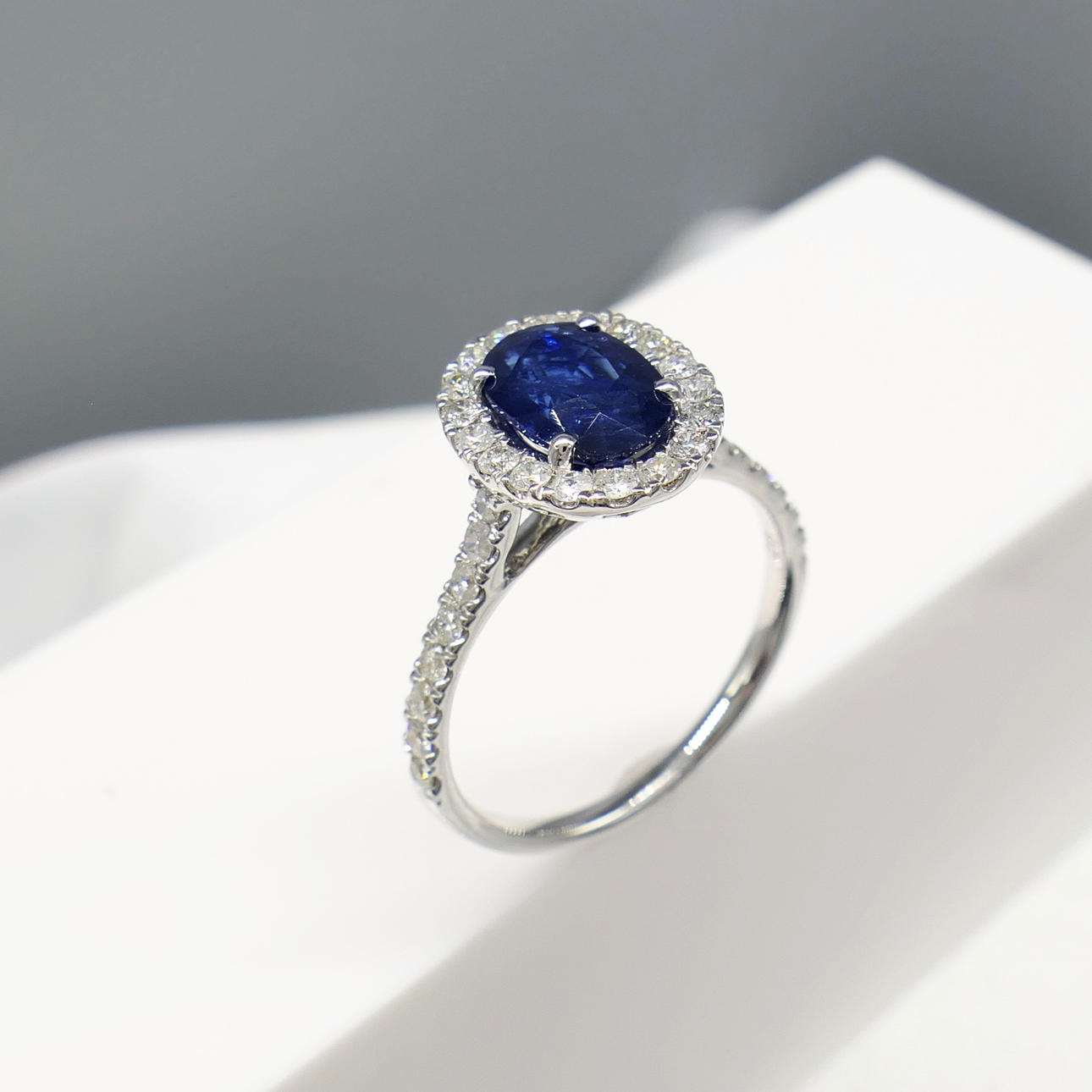 Blue sapphire gemstone: natural; oval cut; 1.45 carat; good colour saturation; claw set