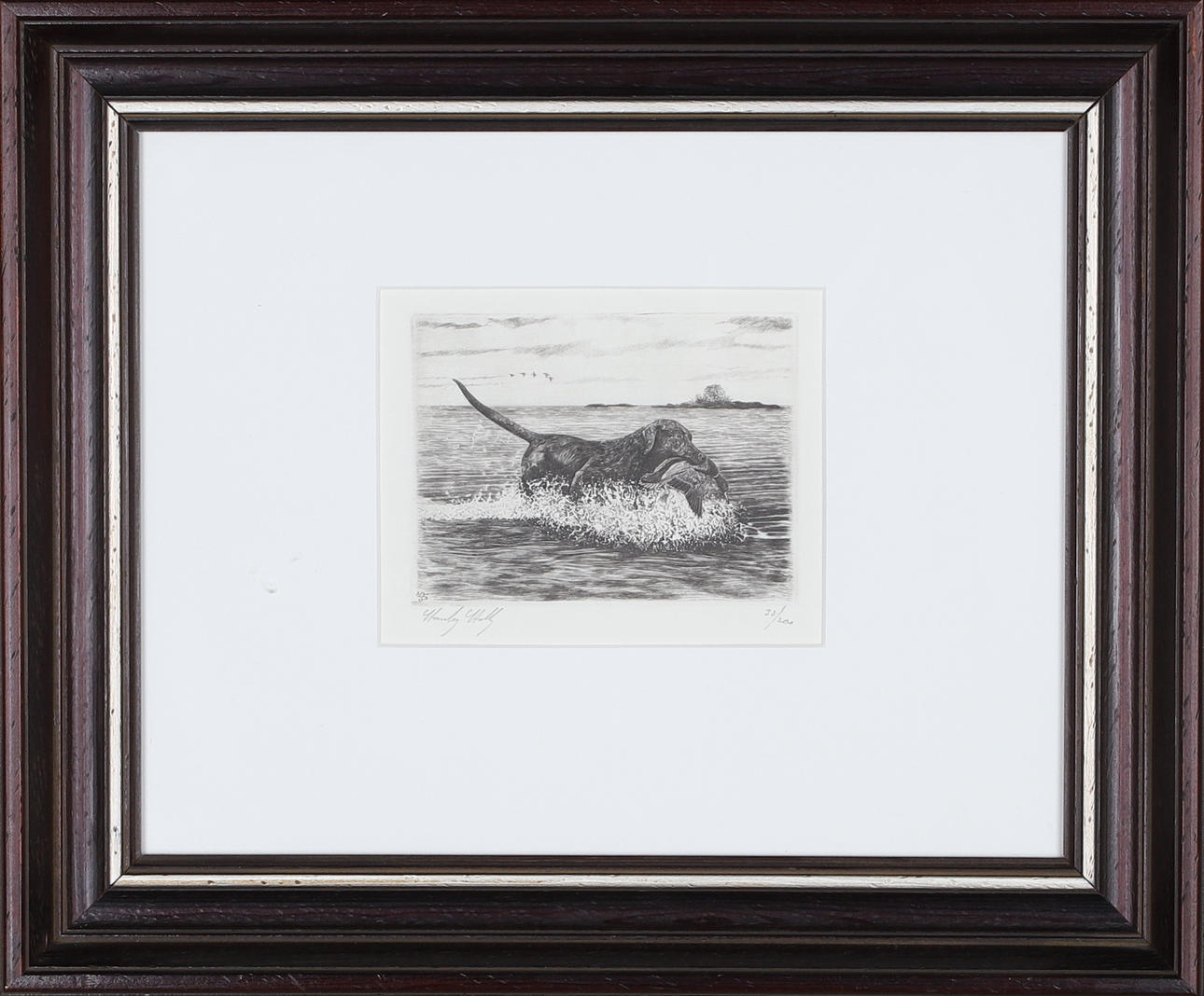 Wooden frame with glass approx. 36.5x31 cm.