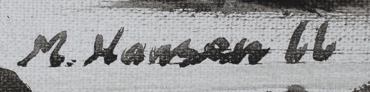 5050701. OIDENTIFIERAD KONSTNÄR. Landscape, oil on canvas, signed M. Hansen, dated 66.