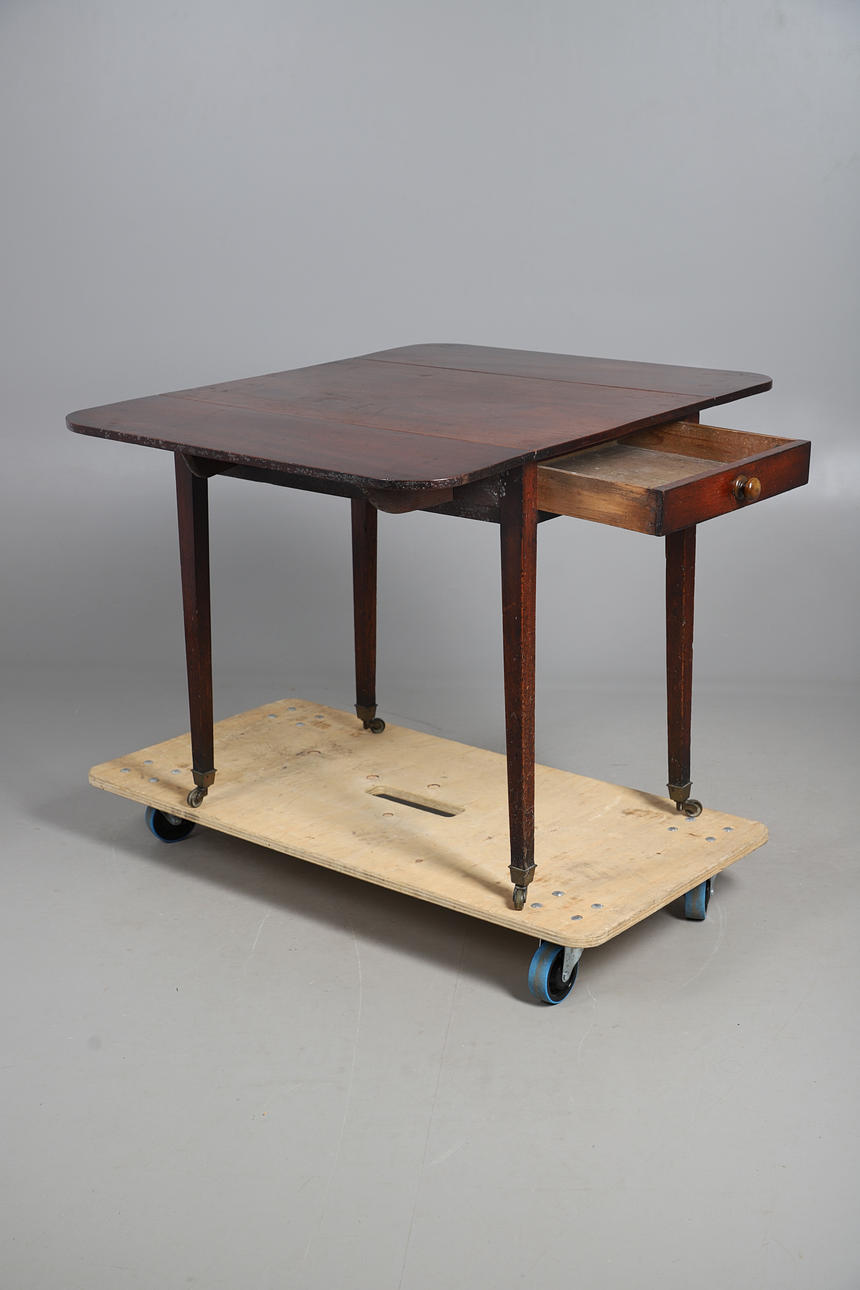 With single frieze drawer and faux drawer, raised on fluted legs on casters, W103.5 x H77 x D82cm.