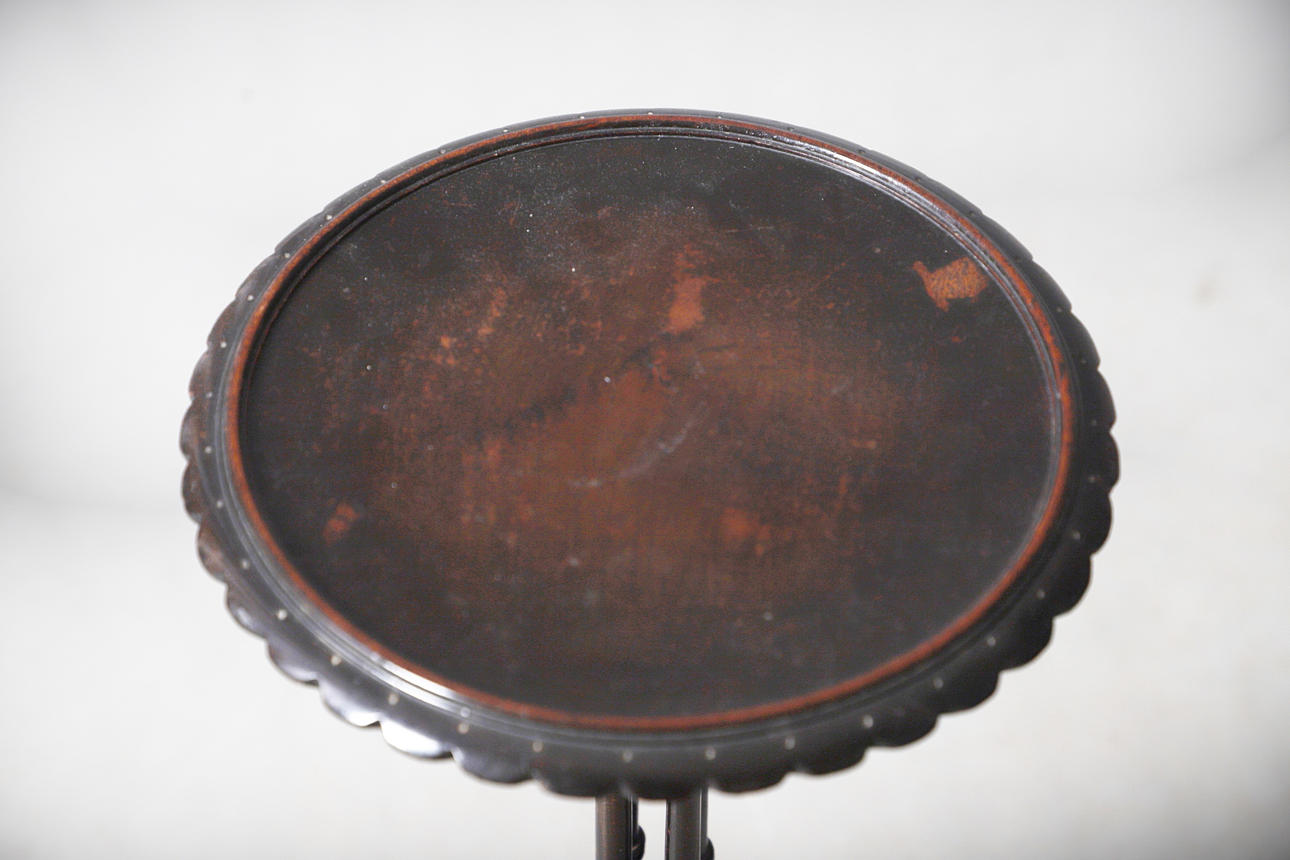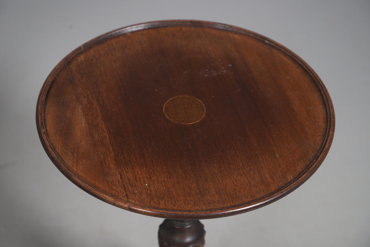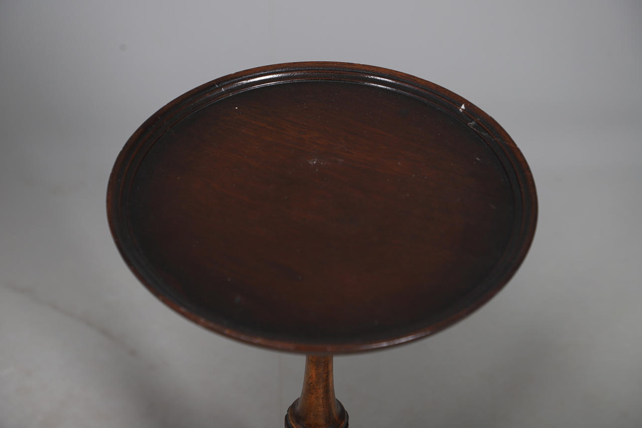 Two with turned central columns, one with pierced central support, all raised on tripod bases, largest H58cm (3).