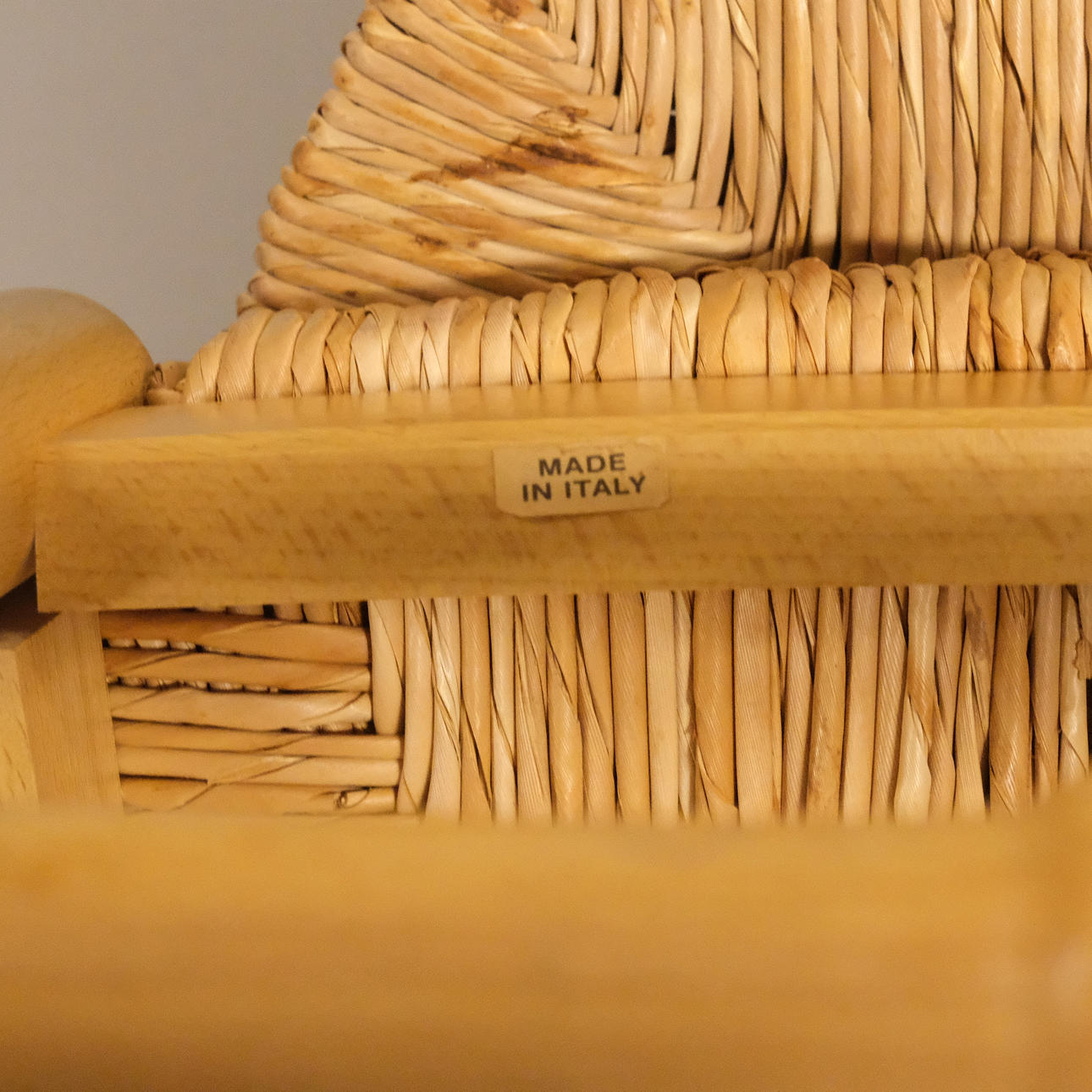 Straw and beech. Labelled. Height 90 cm, seat height 46 cm, width 42 cm.