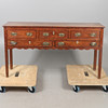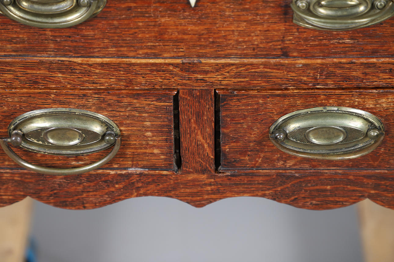 General wear, marks and knocks. Losses and marks to the escutcheons. Wear to the base of the supports. Support to the upper drawers are damaged causing them to be difficult to open. Marks and scratches to the top. Other imperfections. See online images.