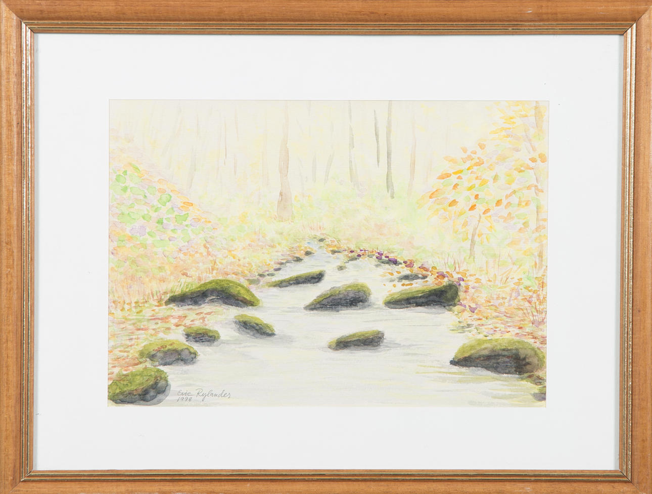 507932. ERIC RYLANDER. Landscape with stream, watercolour, signed 1998.