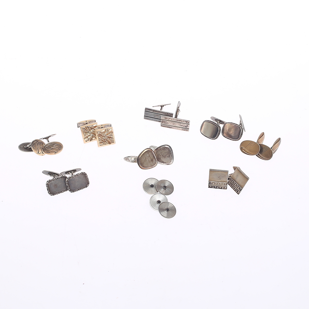 513685. CUFF LINKS, 9 pairs, silver, 1900s.