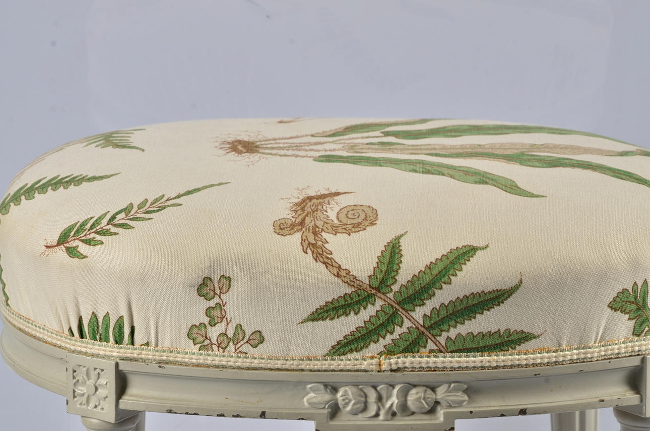 White fabric with green leaves, length 55 cm, depth 45 cm, height 45 cm.