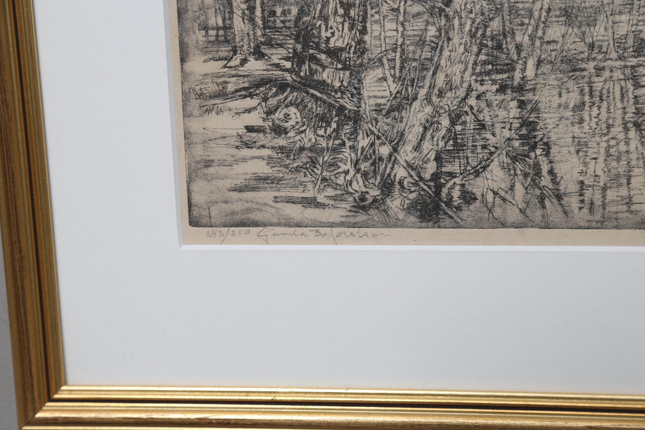 EINAR PERSSON. "Old Bofors Bridge". Etching, signed.