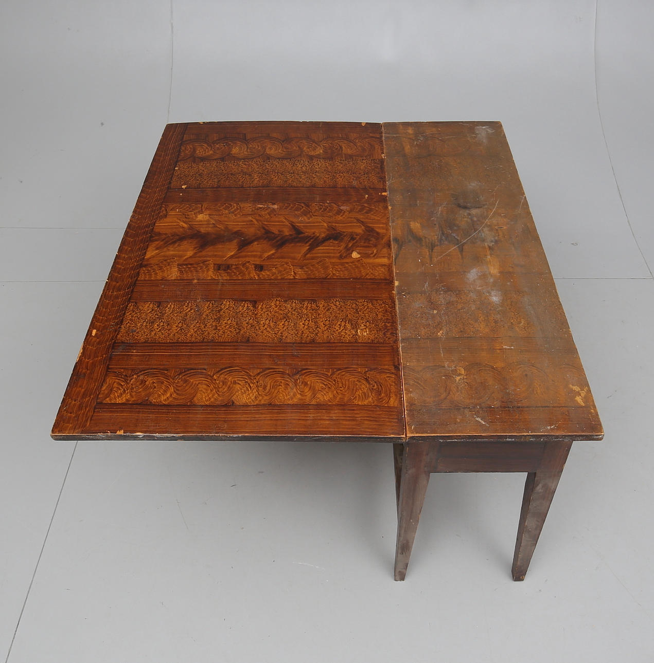 Painted. Single gate. Coupled leg position. A folding flap of 67 cm. Length 117. Width 104. Height 75 cm.