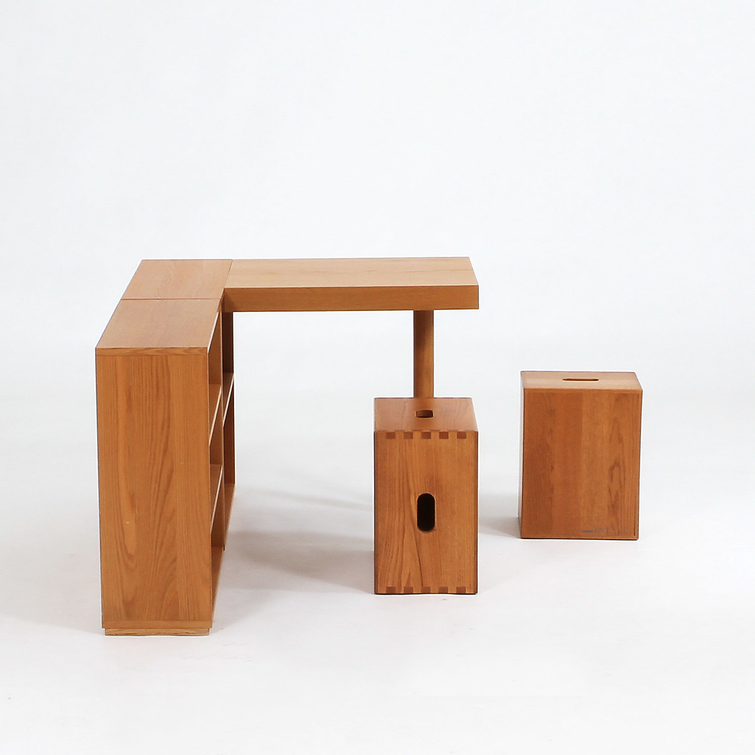 522506. LE CORBUSIER. Desk "LC16" and 2 stools "LC14", Cassina.