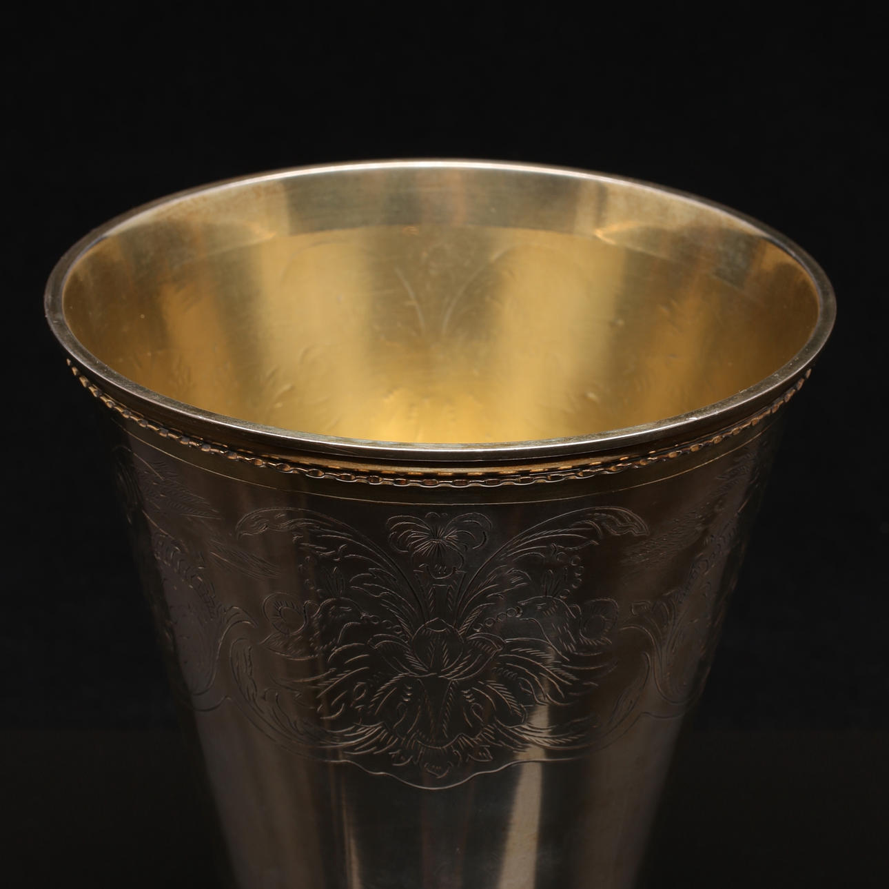 Cup in silver with plant and bird decoration and interior gilding Height 15.5 cm Weight 391 grams.